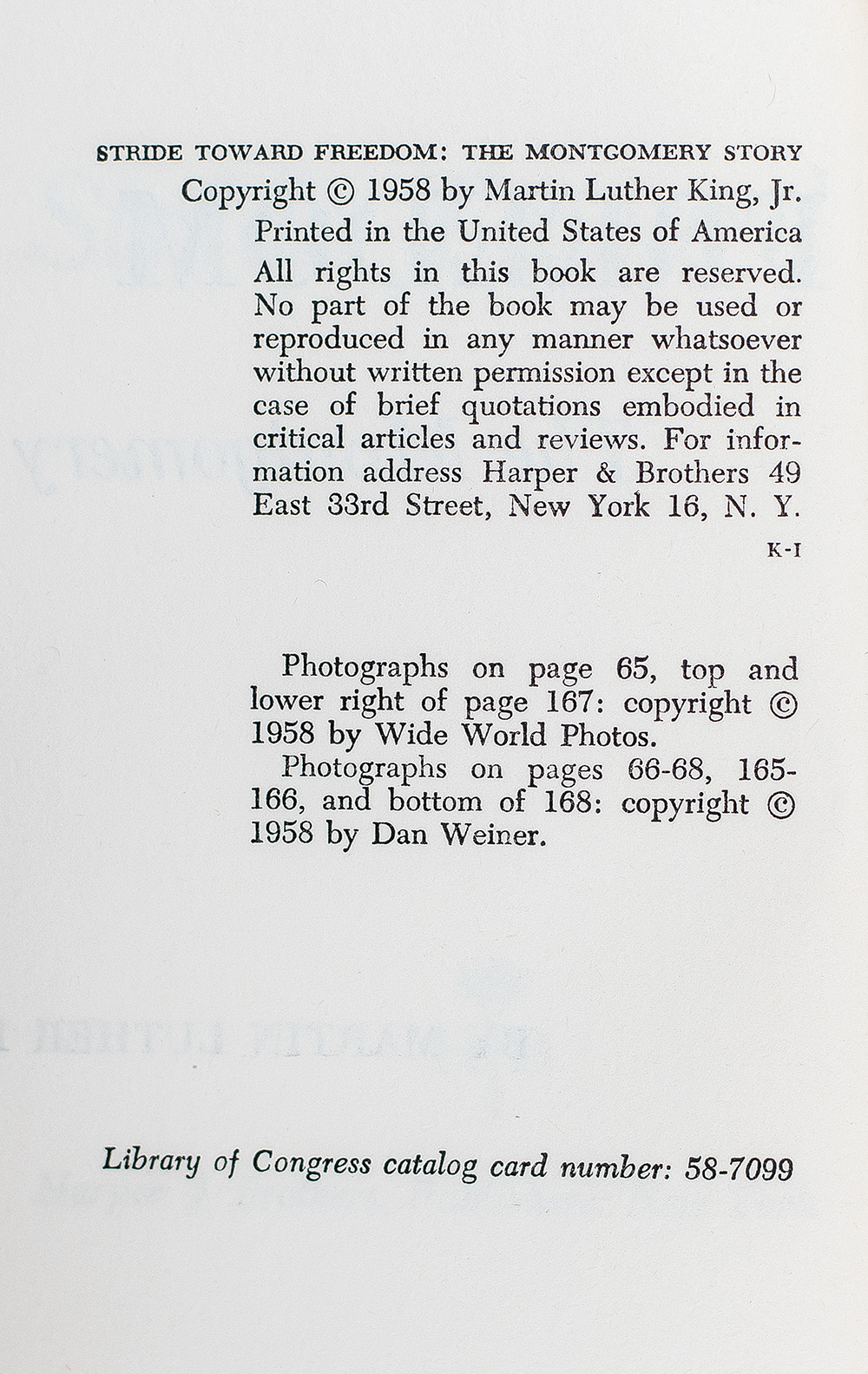 "God is interested in the freedom of the whole human race": First Edition of Stride Toward Freedom: The Montgomery Story; Signed by Martin Luther King, Jr.