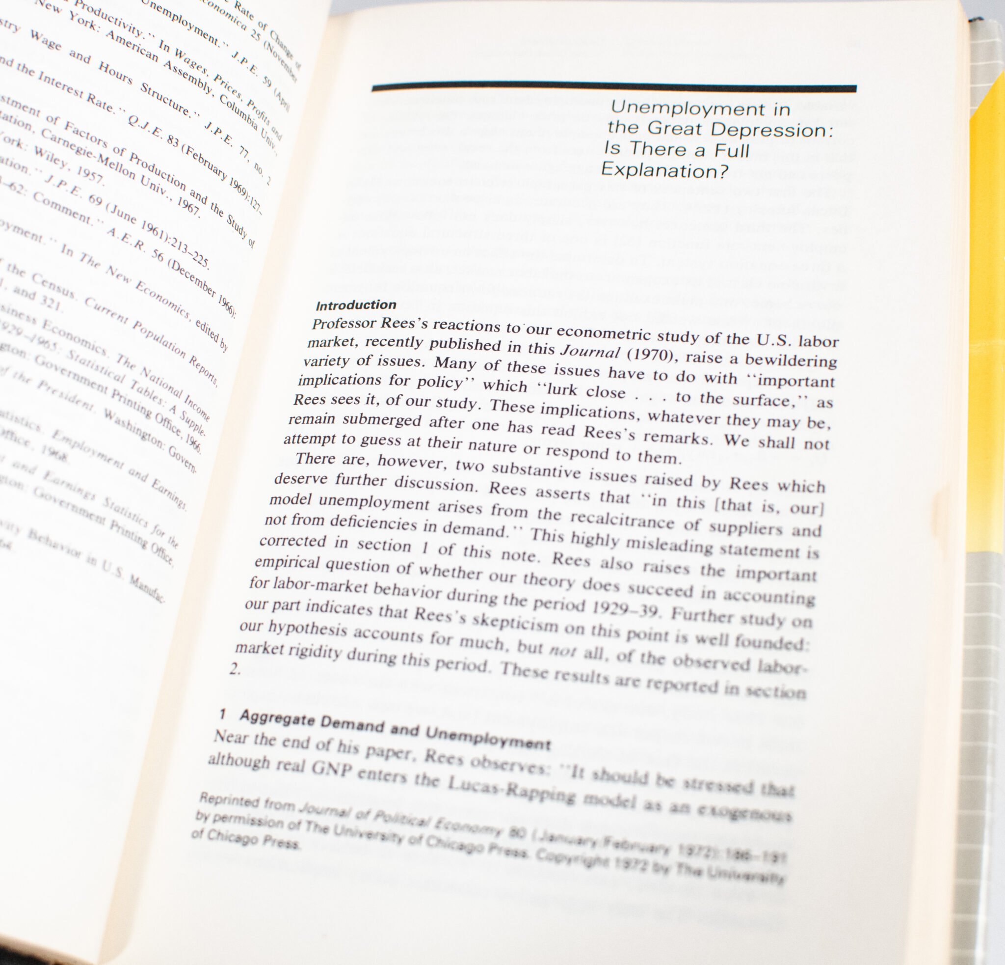 First edition of this classic collection of writings by the Nobel Prize-winning economist. Octavo, original cloth. Presentation copy, inscribed by the author on the title page, "For Christopher- with my best wishes- Robert E. Lucas Jr." Near fine in a very good dust jacket. Jacket design by Michael McPherson.