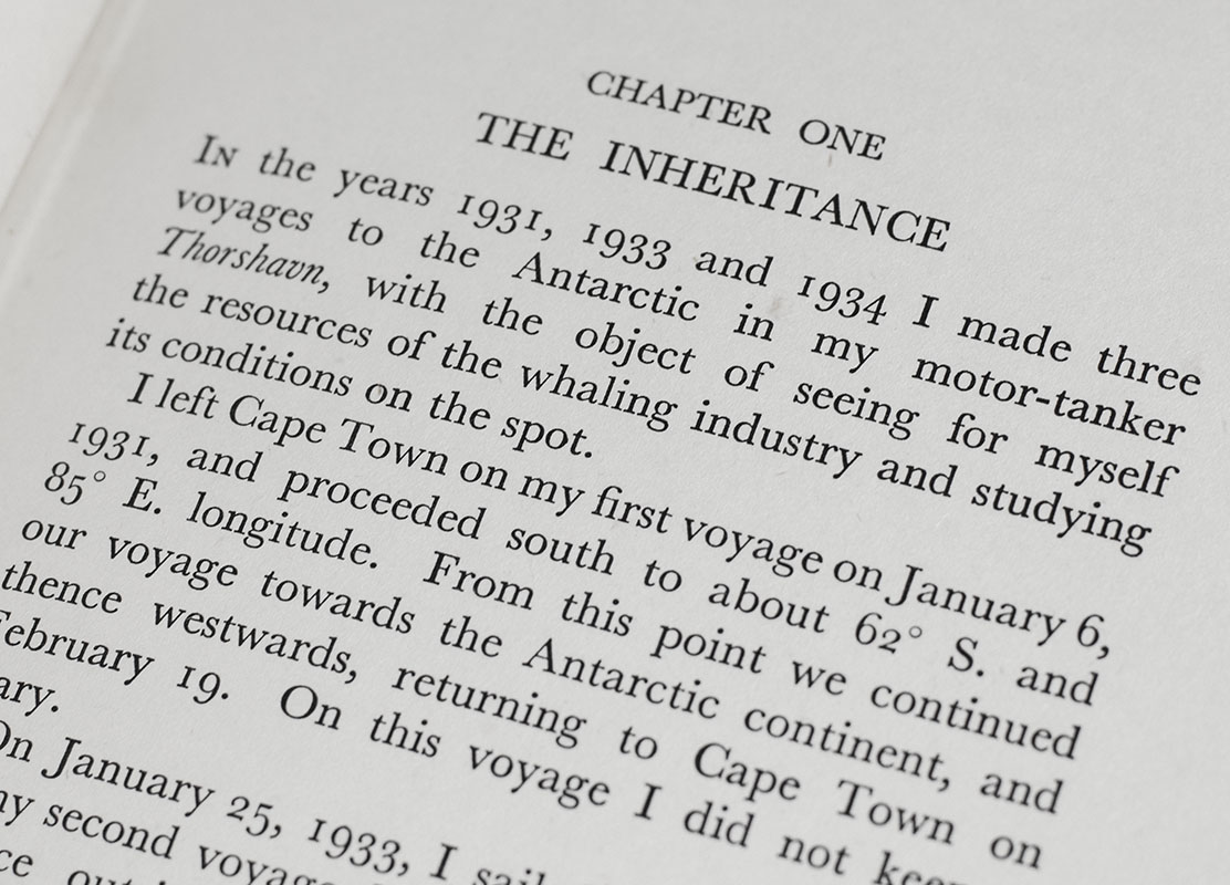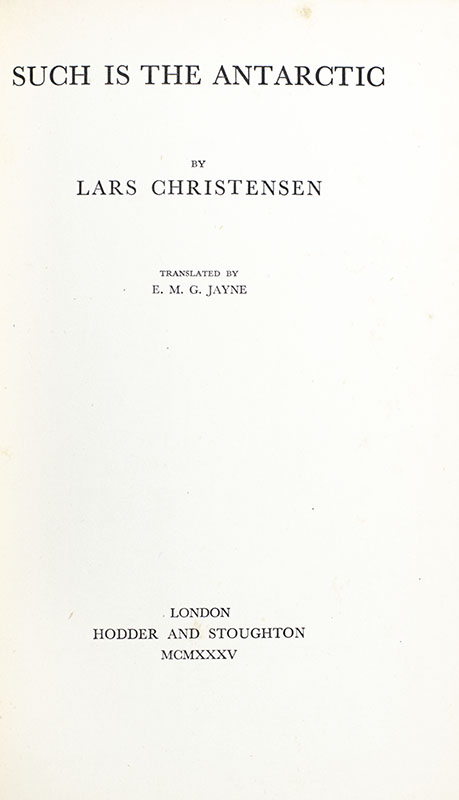 Norwegian whaling magnate Lars Christensen financed several expeditions specifically devoted to the exploration of the Antarctic continent and its waters, and participated in some of these himself, even bringing his wife Ingrid with him in the 1936–1937 expedition. He was among the first to use aerial surveying with seaplanes to map the coast of East Antarctica, which he completed from the Weddell Sea to the Shackleton Ice Shelf, concentrating on Bouvetøya and the region from Enderby Land to Coats Land. Such Is The Antarctic contains impressions edited from his original diary entries from his journeys during the seasons 1930-31, 1932-33 and 1933-34.