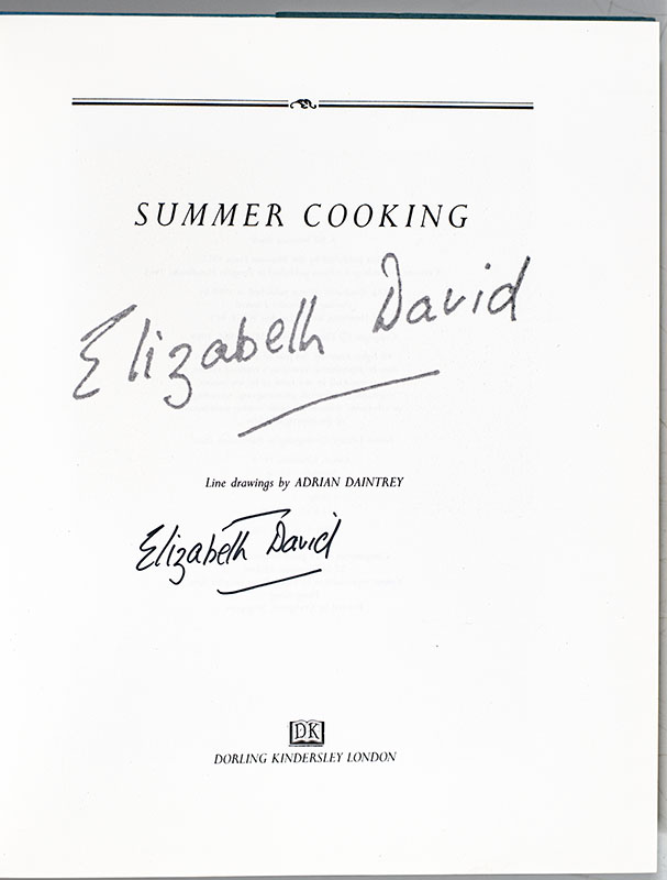 "The secret of good summer food is the freshness of ingredients": Elizabeth David's Summer Cooking; Signed by Her