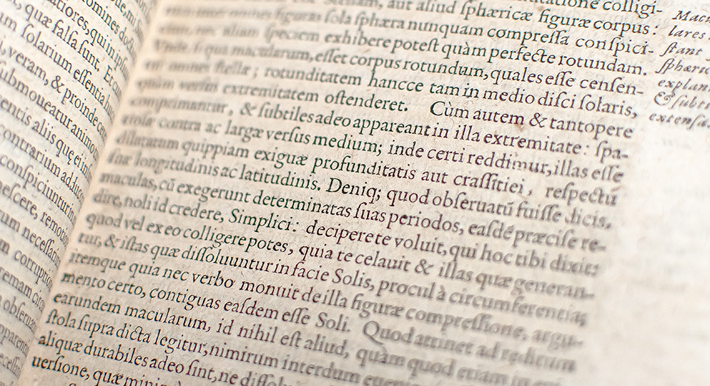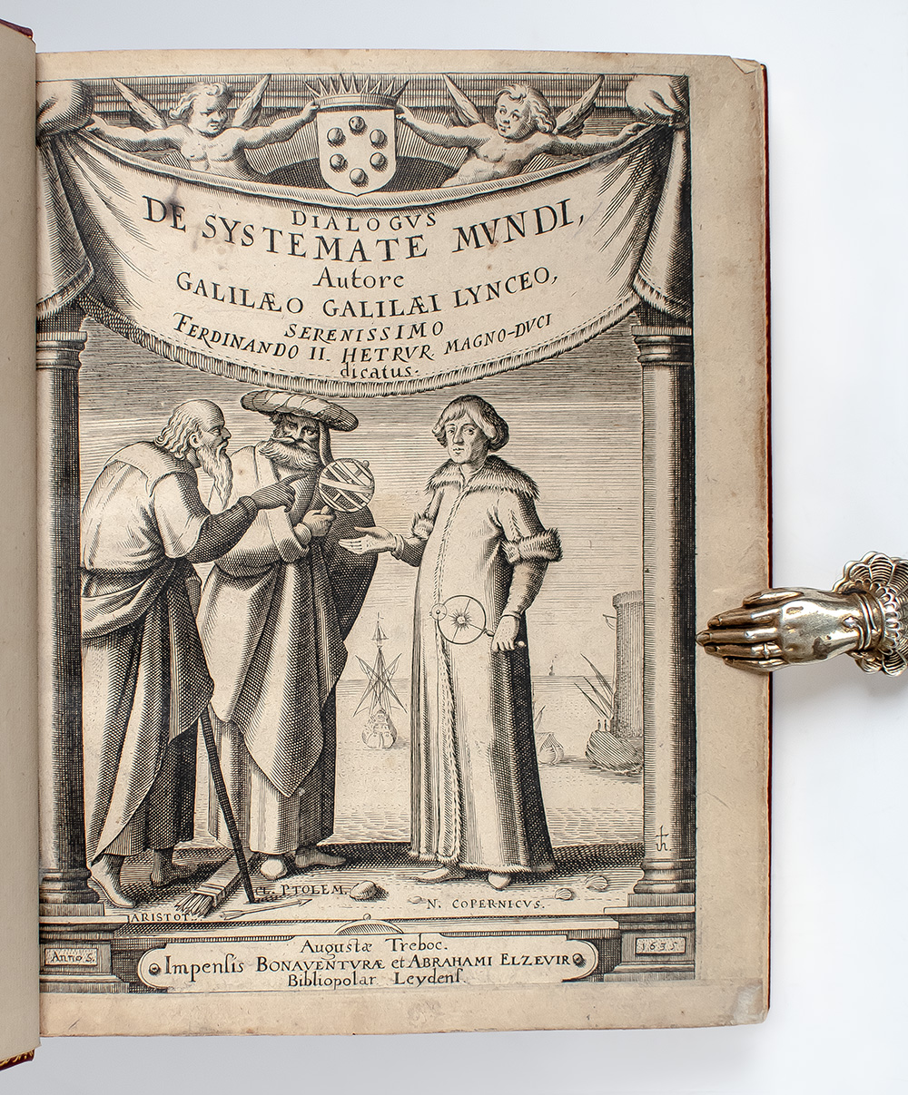 Rare First Latin Edition of Galileo Galilei's Dialogue Concerning the Two Chief World Systems; the summation of his astronomical thought and the work which directly precipitated his 1663 trial