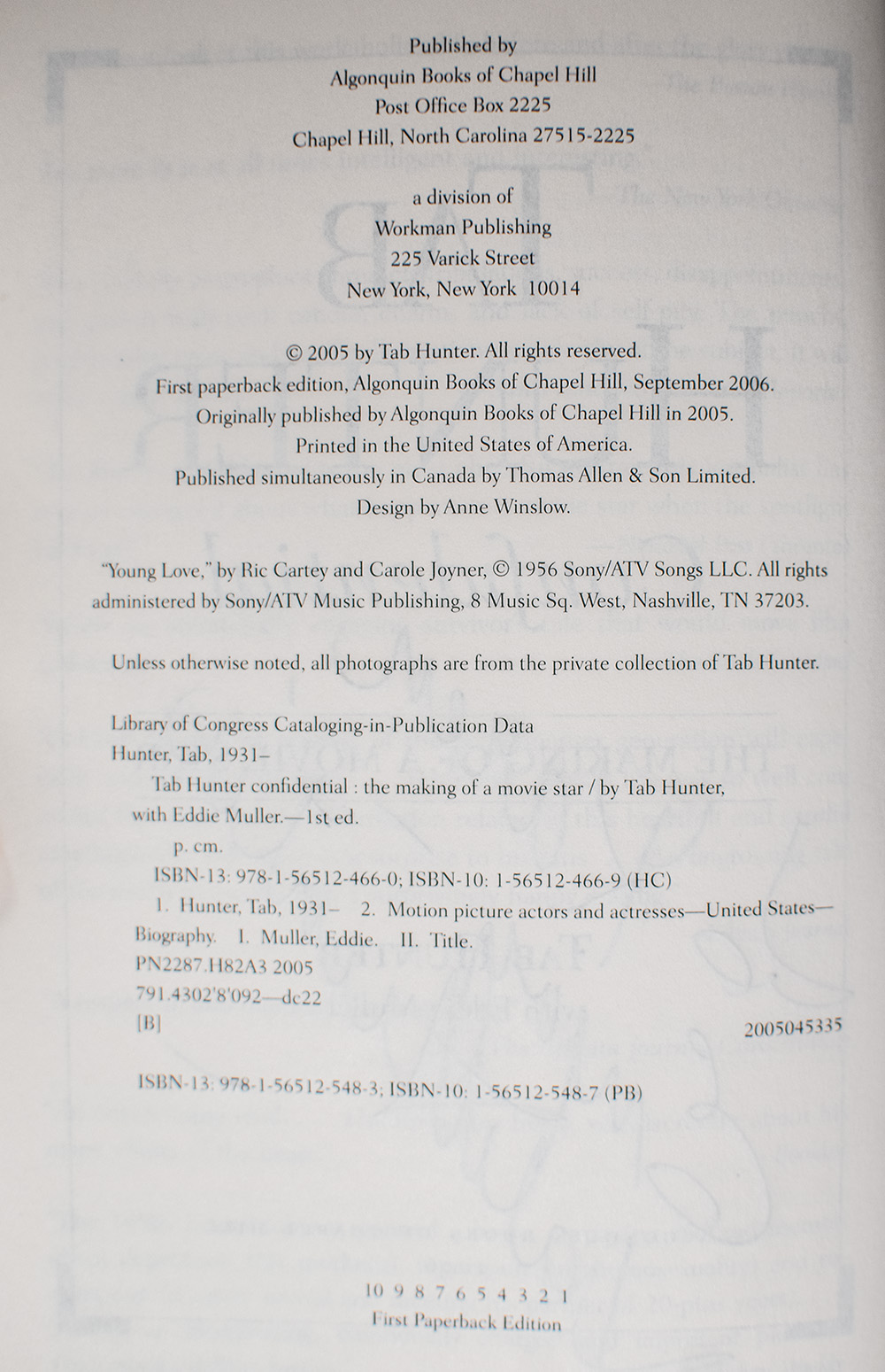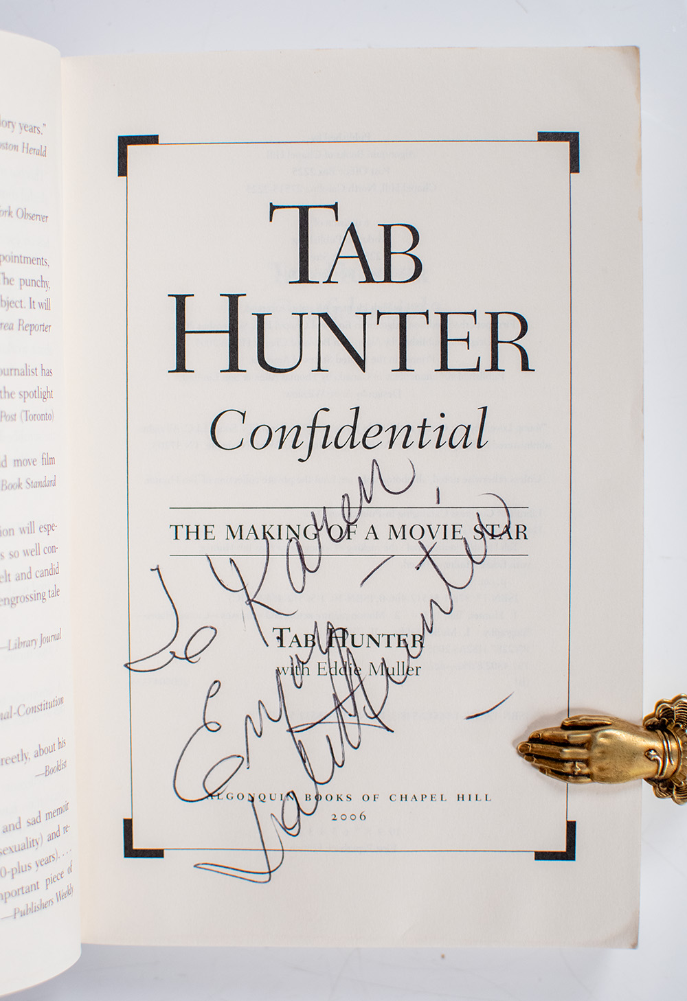 "This is no fairy tale. It does, however, start out like one": First Edition of Tab Hunter Confidential: The Making of a Movie Star; inscribed by Tab Hunter