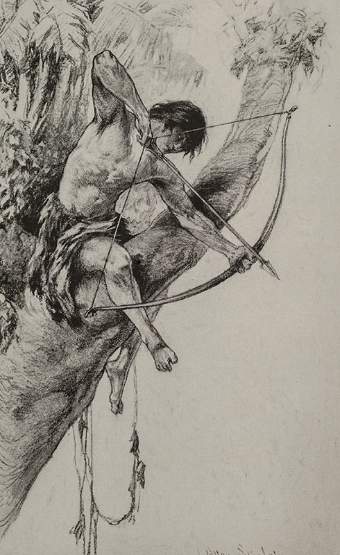 The noble savage Tarzan first appeared in Burroughs' 1912 story Tarzan of the Apes, published in the pulp magazine The All-Story and in book form two years later. An archetypal feral child raised in the African jungle by Mangani great apes, Tarzan spawned innumerable works in literature and film, including 25 sequels and the popular Tarzan movie franchise which lasted from the 1930s to the 1960s. The fifth novel in the series, Tarzan and the Jewels of Opar follows Tarzan in his return to Opar, the source of the gold where a lost colony of fabled Atlantis is located, and his daring escape from the clutches of the high priestess of Opar, La.