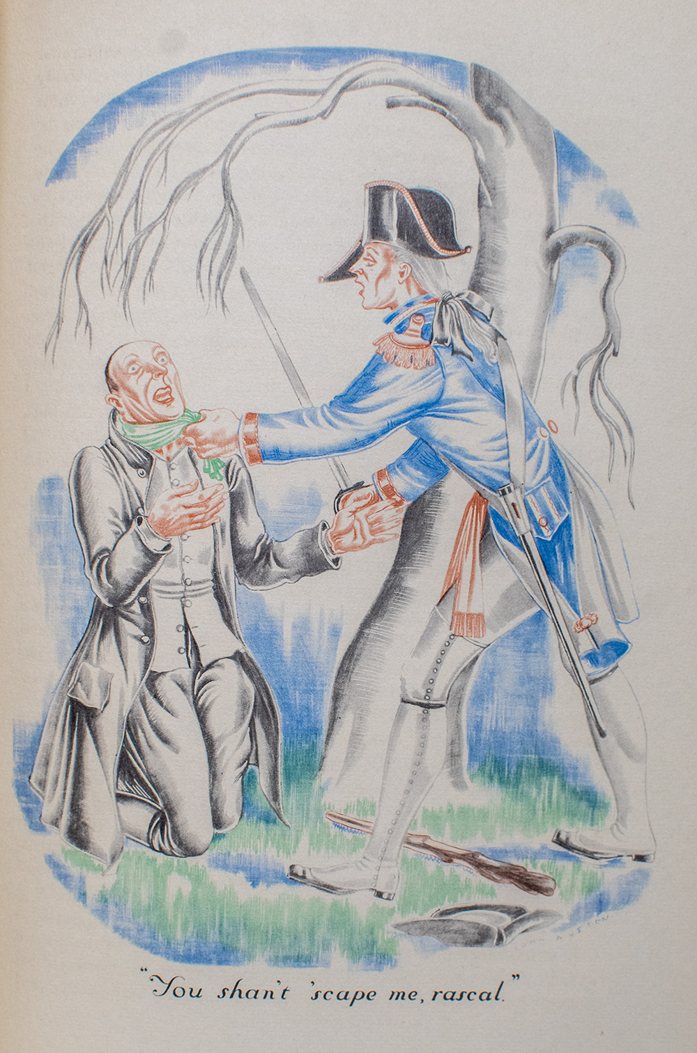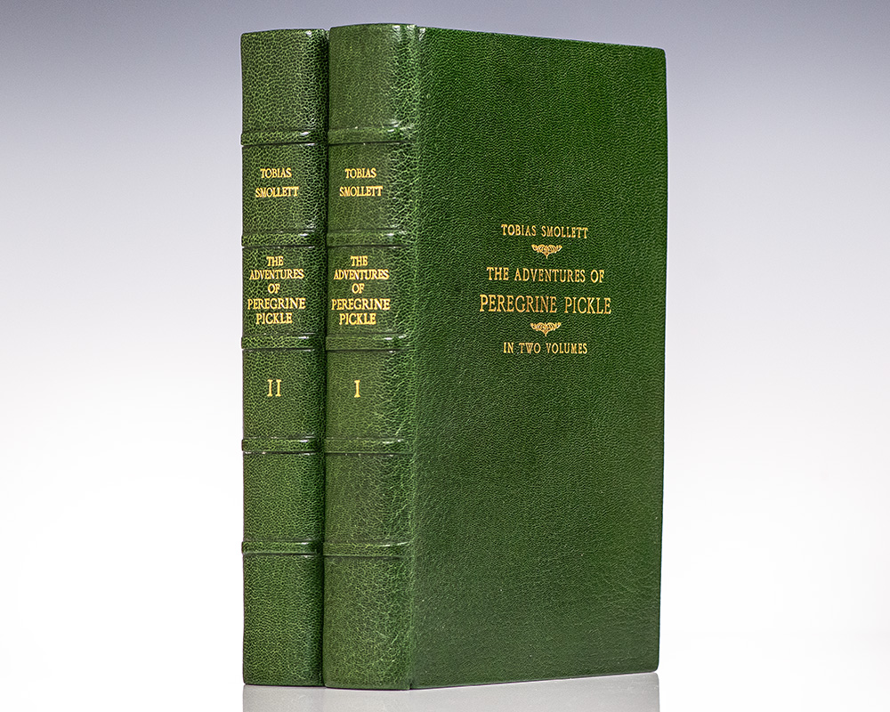 The Limited Editions Club signed limited edition of Smollett's second novel. Quarto, two volumes, bound in full modern morocco by Sangorski & Sutcliffe / Zaehnsdorf with gilt titles and numbers to the spine in six compartments within raised bands, top edges gilt, gilt inner dentelles, marbled endpapers, frontispieces, title page vignettes, with color illustrations throughout. Boldly signed by illustrator John Austen on the colophon page at the rear of volume two. One of 1,500 numbered copies, this is number 3. In fine condition. Introduction by G.K. Chesterton. Illustrated by John Austen. John Austen was a distinguished British illustrator whose elegant, Art Deco–influenced line work and imaginative visual interpretations brought a distinctive modern sensibility to classic literary texts, including works by Shakespeare, Oscar Wilde, and Jane Austen.