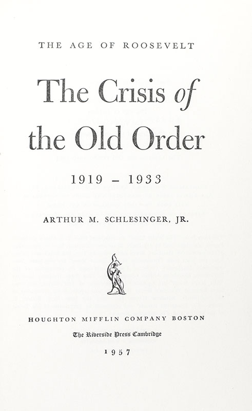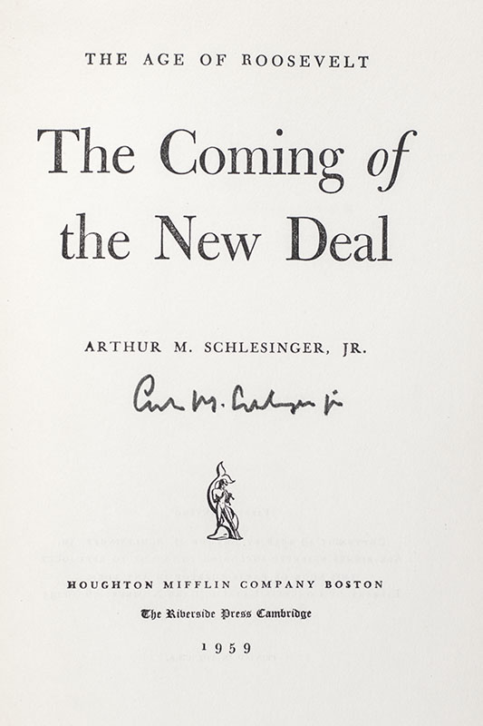 First editions of the historian's Pulitzer Prize-winning trilogy on the Age of Roosevelt. Octavo, 3 volumes, original cloth. Each volume is signed or inscribed. Each are near fine in near fine price-clipped dust jackets.