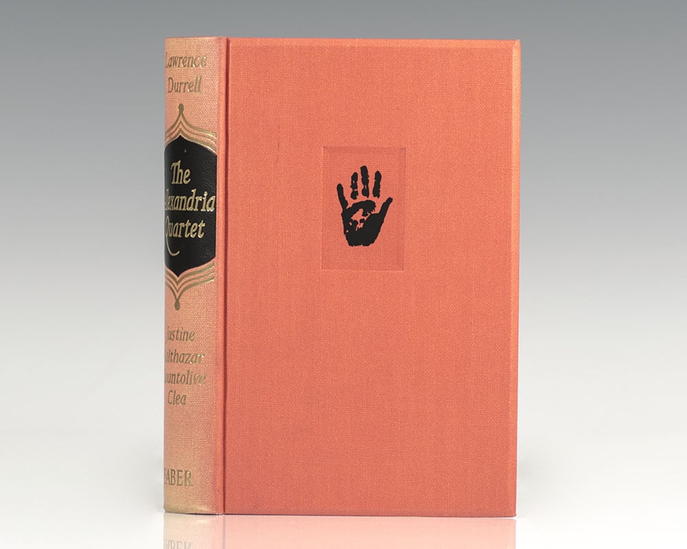 Signed limited first edition of Durrell's masterpiece, one of 500 numbered copies. Signed by Lawrence Durrell on the limitation page. Octavo, original orange cloth, hand-print design to upper board in black, yellow endpapers, top edge gilt. With the original acetate dust jacket, in the publisher's black and gold slipcase. An exceptional example.