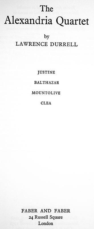 The Alexandria Quartet. Justine, Balthazar, Mountolive, Clea.