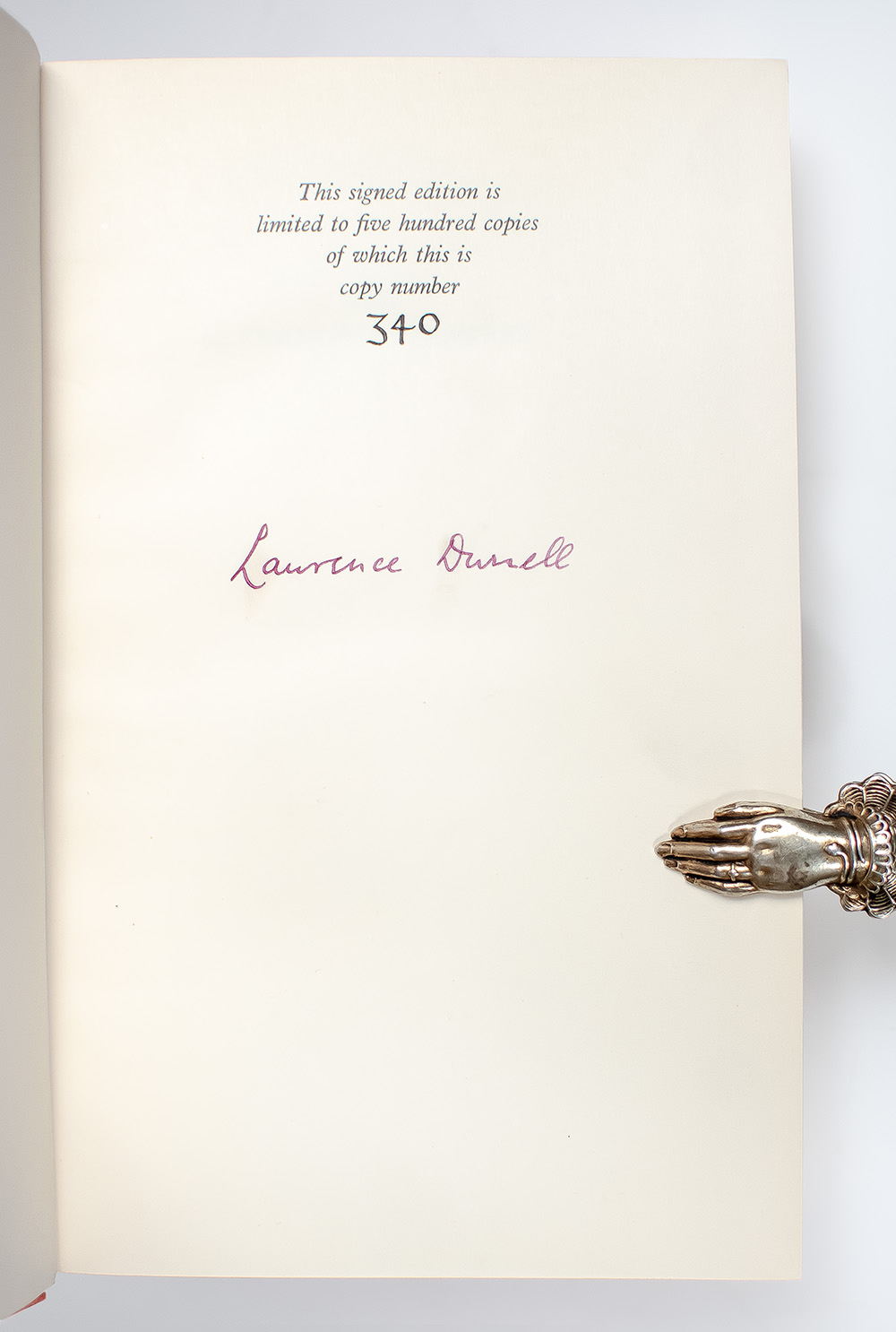 Signed limited first edition of Durrell's masterpiece, one of 500 numbered copies signed by Lawrence Durrell on the limitation page, this is number 340. Octavo, original orange cloth, hand-print design to upper board in black, yellow endpapers, top edge gilt. In very good condition.