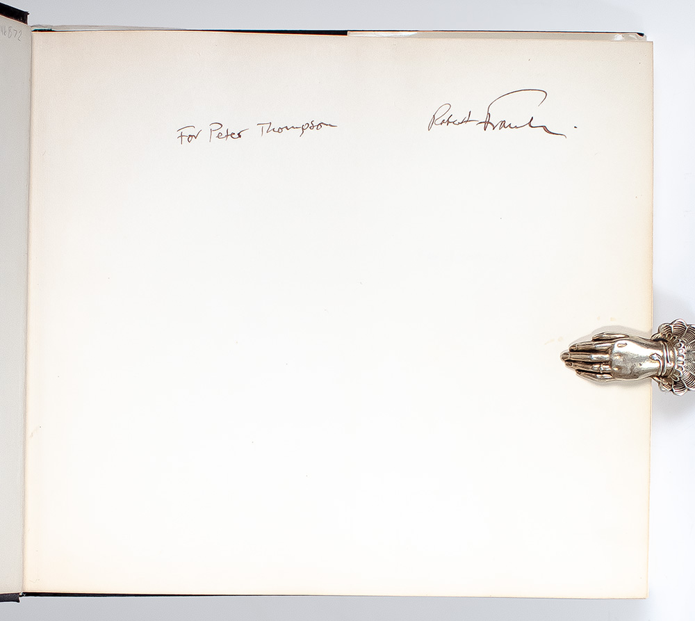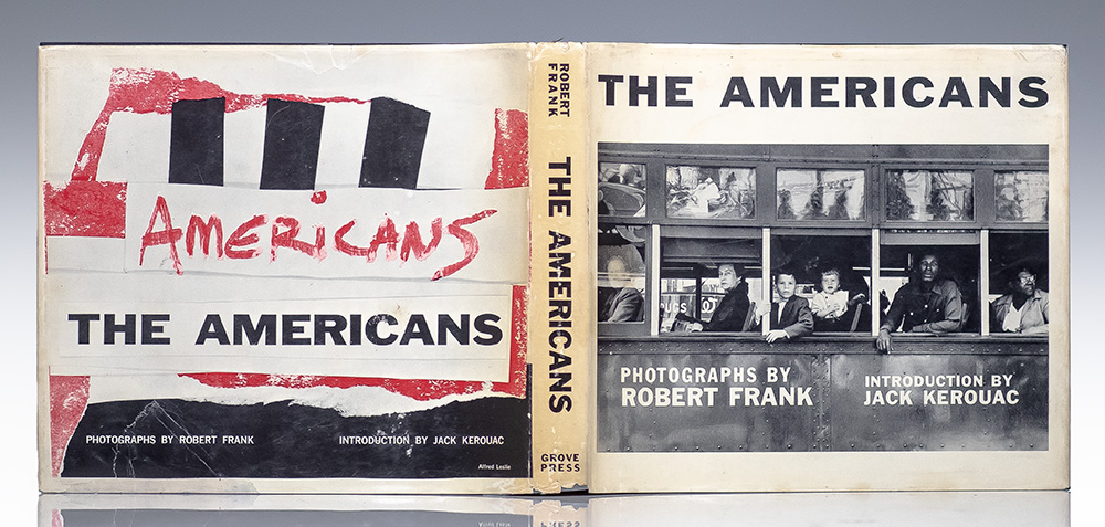 First edition of the photographer's classic work. Oblong quarto, illustrated throughout. Presentation copy, boldly inscribed by the author on the front free endpaper, "For Peter Thompson Robert Frank." Near fine in a near fine dust jacket with a small chip to the spine. Introduction by Jack Kerouac. Housed in a custom half morocco and chemise clamshell box. Uncommon in this condition and signed.
