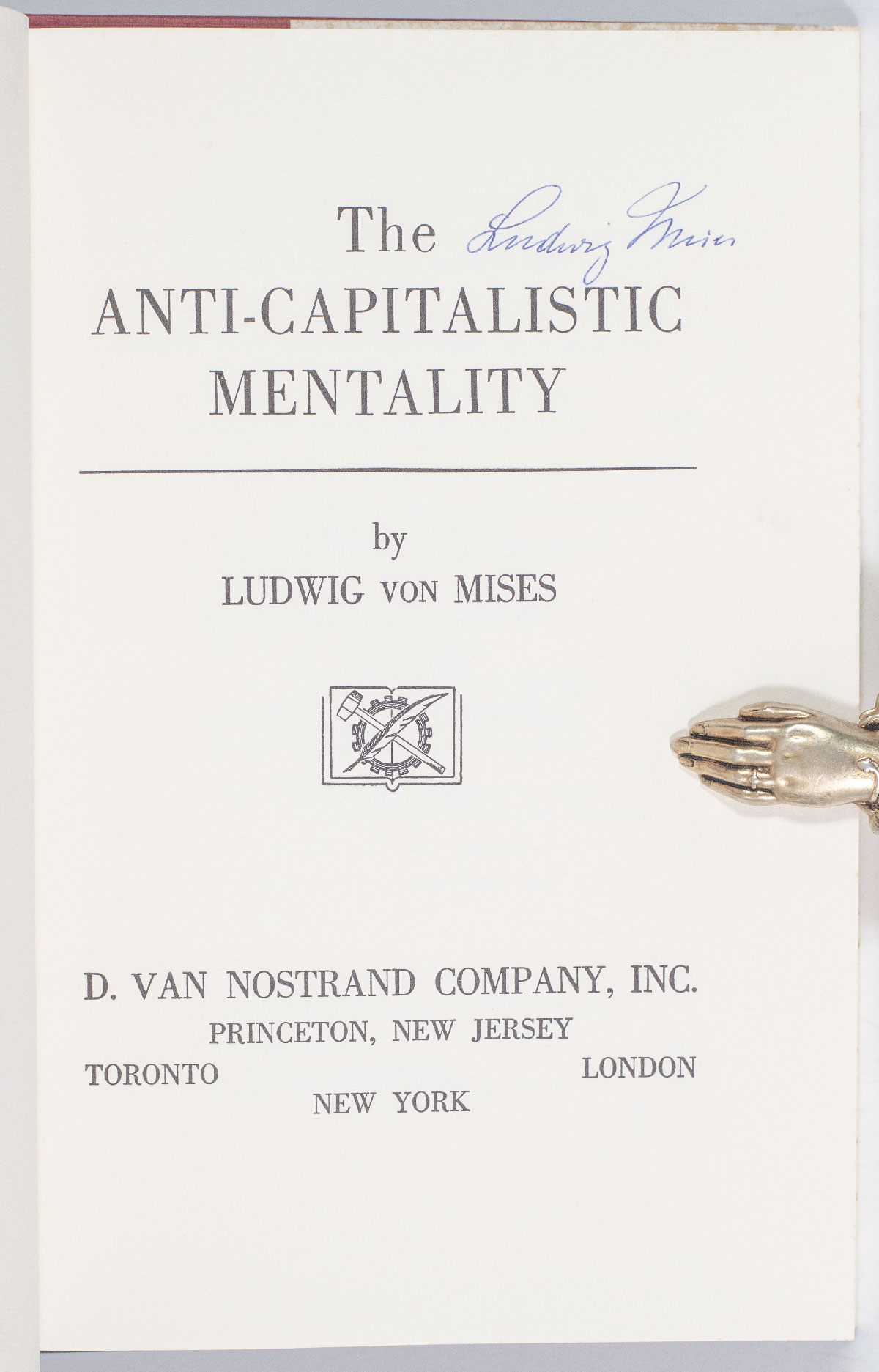 First Edition of Ludwig Von Mises' The Anti-Capitalistic Mentality; Signed by Him