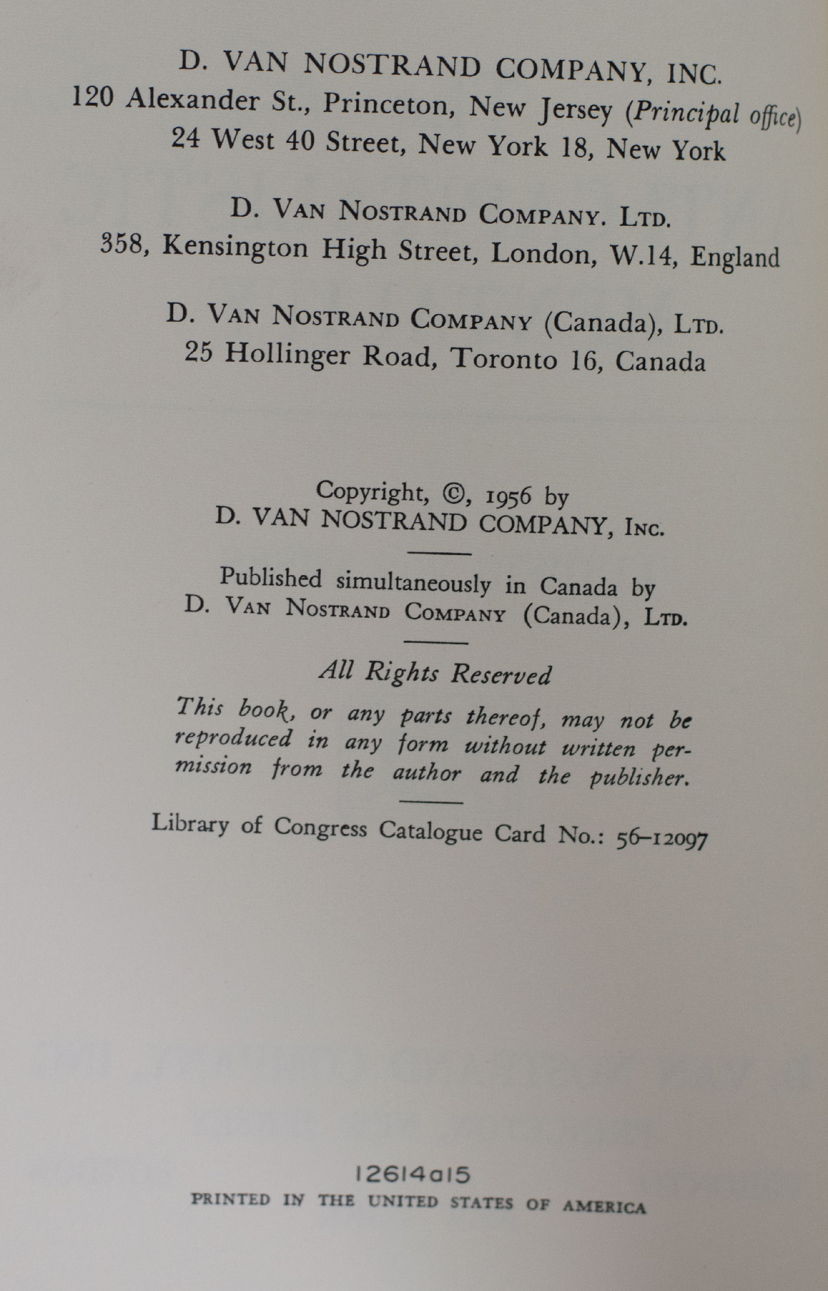 Princeton, NJ: D. Van Nostrand Company, Inc, 1956.