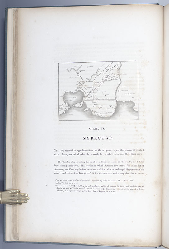 First edition of this ambitious and influential work on the classical architecture of the Magna Graecia by one of the leading figures of the English Greek Revival movement of the early 19th century. Folio, bound in full green buckram, engraved vignette to the title page, illustrated with 73 full-page engraved plates including 20 aquatint views, maps, and illustrations, subscribers list. In near fine condition with the plates remarkably clean. Library stamp to the title page and bookplate to the pastedown.