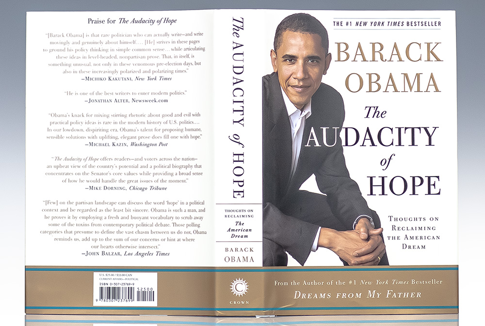 First edition, early printing of Obama's second book. Octavo, original boards. Boldly signed by Barack Obama on the title page. Fine in a near fine dust jacket. Jacket photograph by Deborah Feingold.