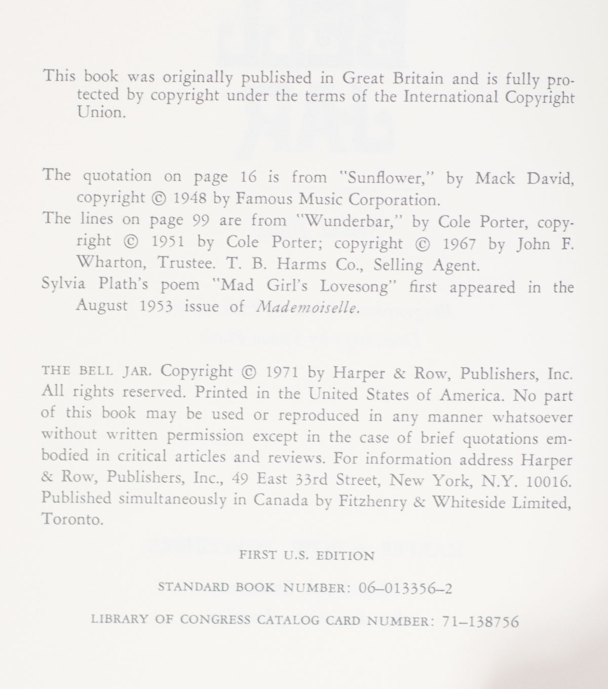 “I took a deep breath and listened to the old brag of my heart. I am, I am, I am": First Edition of Sylvia Plath's The Bell Jar; signed by film director Larry Peerce