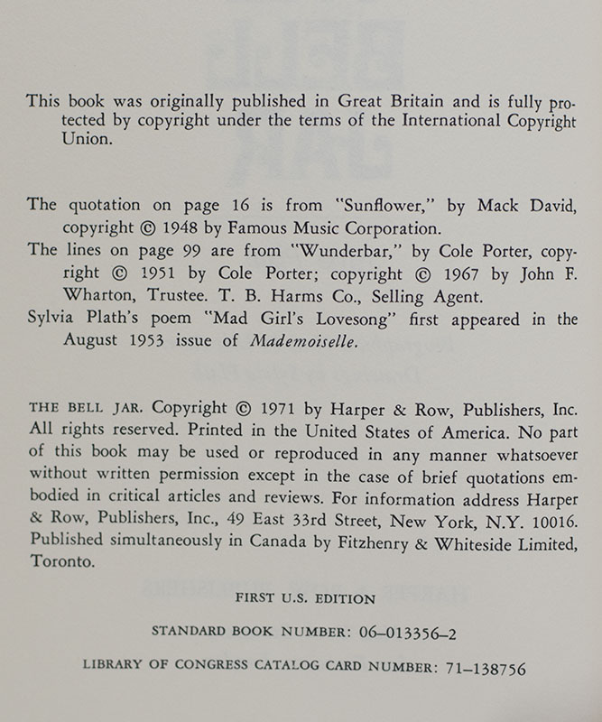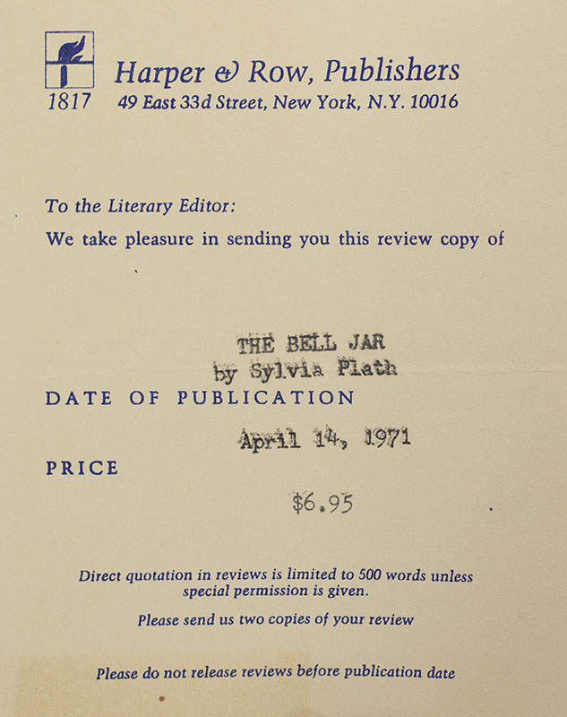 “I took a deep breath and listened to the old brag of my heart. I am, I am, I am": Review Copy of the First Edition of Sylvia Plath's Classic The Bell Jar