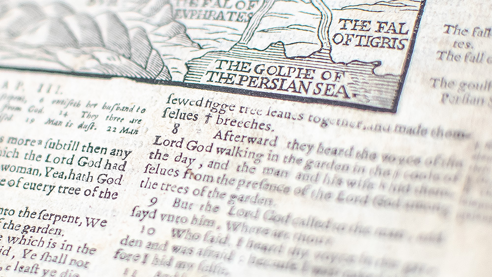 "and they sewed figge tree leaves together, and made themselves breeches" Rare Breeches Bible; Bound with The Booke of Common Prayer