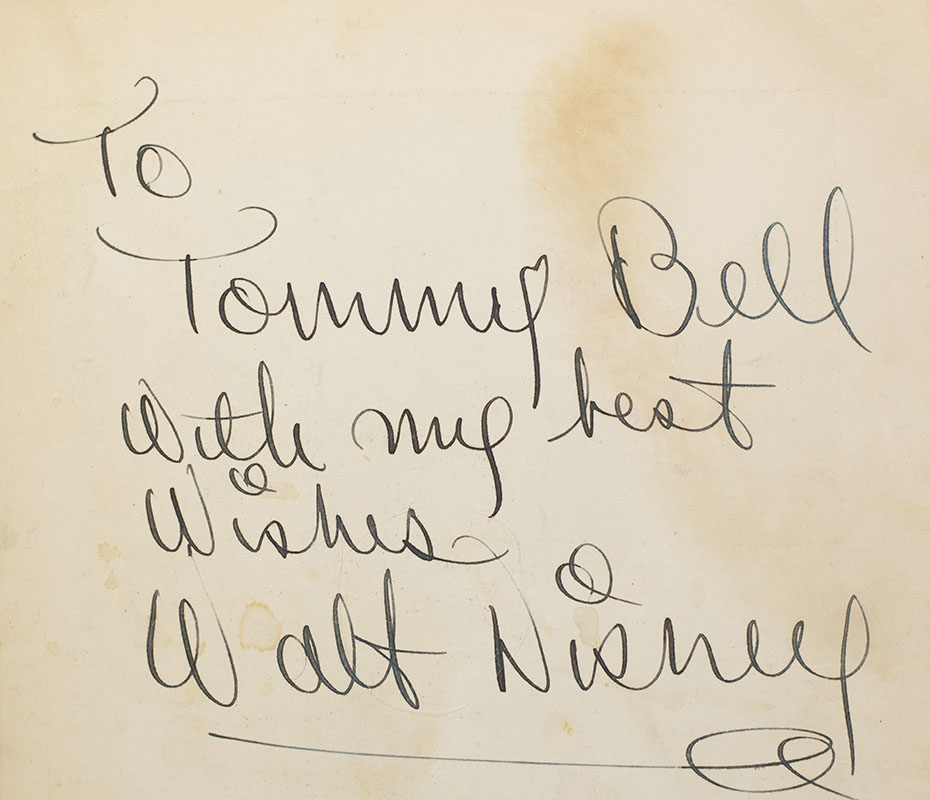 First edition of this wonderfully illustrated work by Disney. Quarto, original illustrated boards, illustrated endpapers, illustrated throughout. Presentation copy, inscribed by the author on the half-title page, "To Tommy Bell with my best wishes Walt Disney." Very good in very good dust jacket.