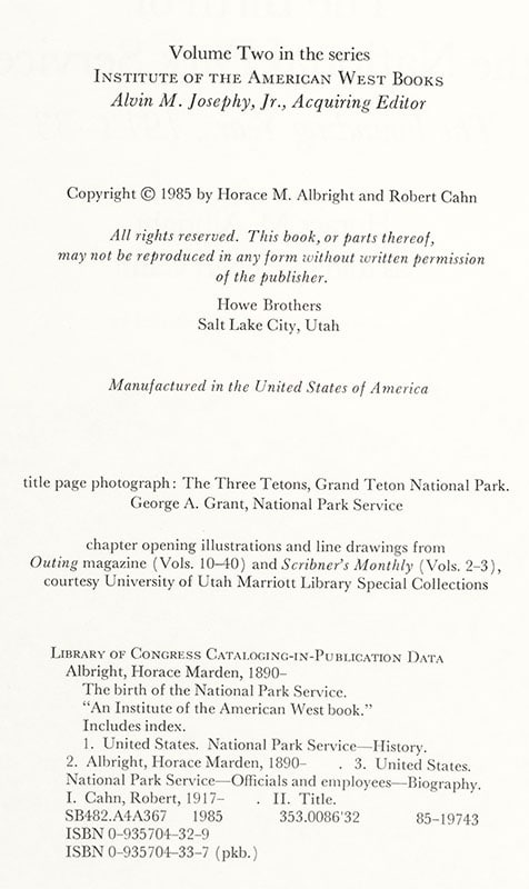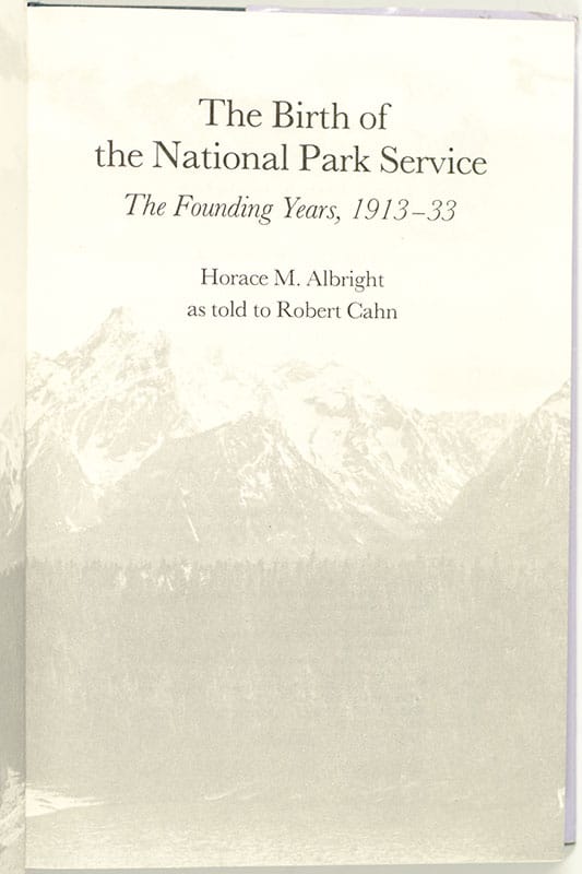 First Edition of Horace M. Albright's The Birth of the National Park Service; lengthily inscribed by him