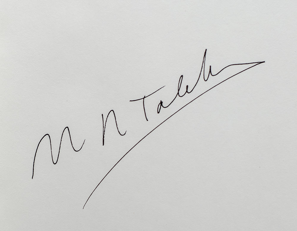 First edition, early printing of this work concentrating on outlier events. Octavo, original boards. Boldly signed by Nassim Nicholas Taleb on the front free endpaper. Fine in a fine dust jacket. Jacket design by Thomas Beck Stvan. Jacket art by Photodisk/ Getty Images.