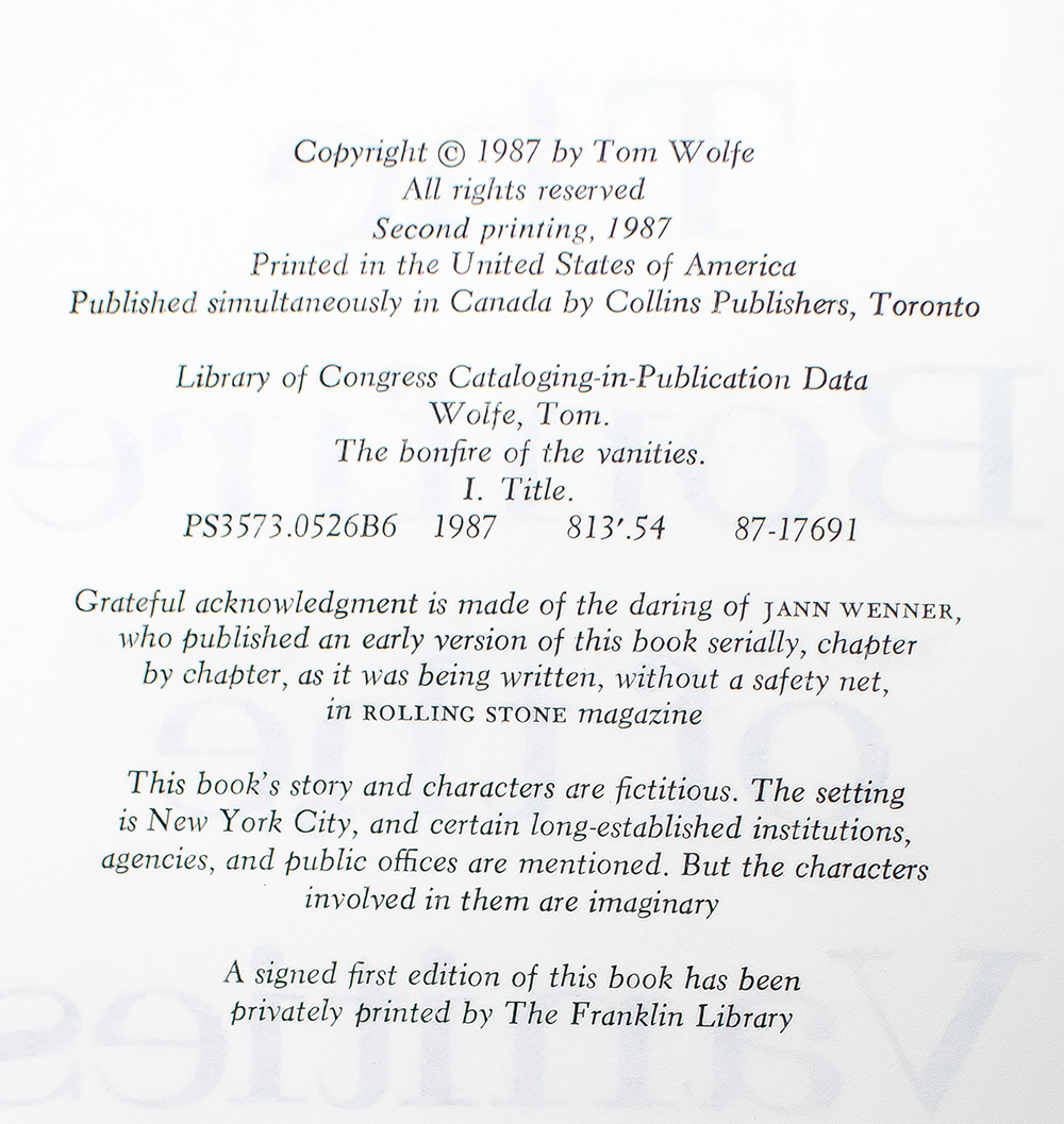 “Your self…is other people, all the people you're tied to, and it's only a thread”: Tom Wolfe's The Bonfire of the Vanities; From the Library of Secretary of State Madeleine Albright