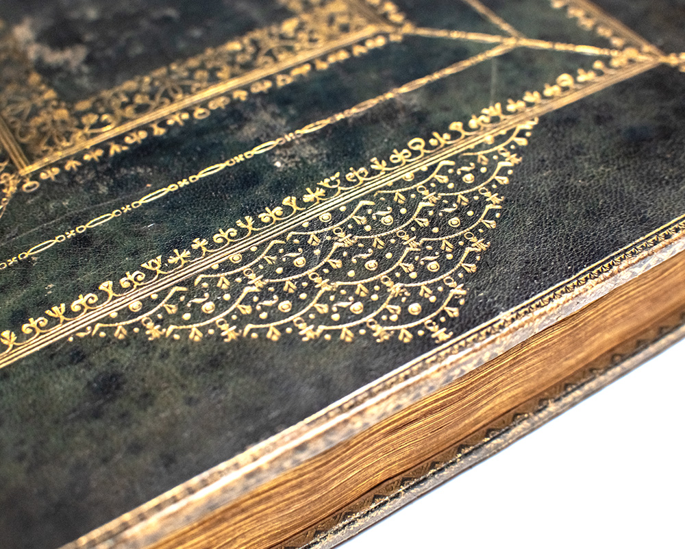 Elegantly bound 18th century English Book of Common Prayer and Administration of the Sacraments, printed by Thomas Baskett and from the library of John Bird Sumner (1780-1862), Archbishop of Canterbury from 1848 to 1862. Folio, bound in full contemporary dark green grain morocco with elaborate gilt tooling to the spine in seven compartments within raised gilt bands, elaborate gilt paneling to the front and rear panels with royal crown motif cornerpieces, gilt turn-ins and inner dentelles, marbled endpapers, additional engraved title, title in red and black, small section excised from title margin (neatly restored), engraved head- and tail-pieces, previous owner's ink signature to title and title verso, family history manuscript notes in various hands to early blanks. Provenance: From the library of John Bird Sumner (1780-1862), Archbishop of Canterbury from 1848 to 1862. Educated at Eton and King’s College, Cambridge, Sumner emerged as a leading voice of the evangelical wing within the Church of England. Before his elevation to the primacy, he served as Bishop of Chester (1828–1848), where he was known for his pastoral reforms and emphasis on clerical education. Sumner’s numerous theological works—including A Treatise on the Records of Creation (1816) and The Evidence of Christianity Derived from Its Nature and Reception (1824)—sought to reconcile faith with reason and to defend Christian doctrine against the rising challenges of skepticism and natural philosophy. As Archbishop, he presided over a period of growing tension between the evangelical and high-church movements, advocating moderation, piety, and moral earnestness. Though often regarded as cautious and conciliatory, Sumner’s influence helped shape mid-nineteenth-century Anglican thought and maintained the Church’s balance amid the theological controversies of his day. Found in the a house owned by the Sumner family. Although Sumner was not Archbishop of Canterbury at the time Queen Victoria married, it has been said that this Prayer Book was used during the Royal Wedding in Westminster Abbey. Inside was once discovered a letter by Prince Albert to the Archbishop of Canterbury, on the occasion of the death of the Archbishop's wife on February 5th 1861. Title inscribed "John Haddock Sauls Book - 26th July 1787." Title verso inscribed, "Eliz. Thornton Book ... June 6th 1752" and in another hand, "The Gift of Mrs. Eliz. Thornton to Miss Jane ... Haddock." Printed card of "Mrs H. J. G. Griffin" loosely inserted with manuscript note verso, which claims "Marriage Service Book used by the Archbishop of Canterbury when marrying H.M. Queen Victoria & The Prince Regent in Westminster Abbey." In very good condition with wear to the extremities. A stunning example of Baskett's distinguished folio edition with unique provenance.