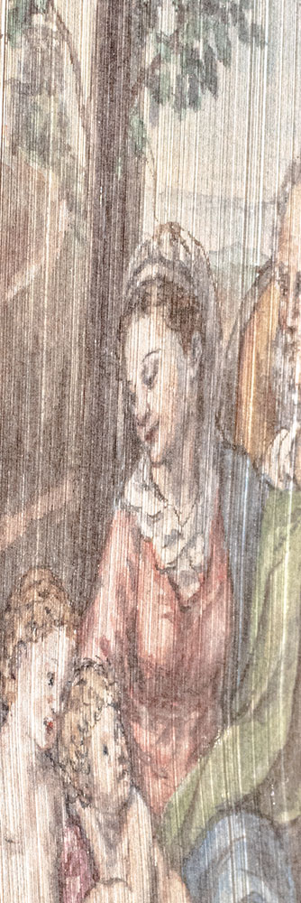 The first known example of a disappearing fore-edge painting (where the painting is not visible when the book is closed) dates back to 1649. Around 1750, the subject matter of fore-edge paintings changed from simply decorative or heraldic designs to landscapes, portraits and religious scenes, usually painted in full color. The technique was popularized in the 18th century by John Brindley (1732-1756), publisher and bookbinder to the Prince of Wales and Edwards of Halifax, a distinguished family of bookbinders and booksellers. The majority of extant examples of fore-edge paintings date to the late 19th and early 20th century on reproductions of books originally published in the early 19th century, including the present volume.