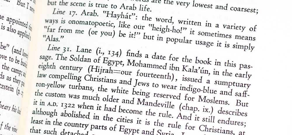The Alf Layla wa-Layla ("One Thousand Nights and a Night") have enchanted readers for centuries with shimmering visions of "a land of fable environment whose deserts and oases, bazaars and slums, jeweled caverns and minaret-topped edifices are immediately recognizable" (Clute & Grant, 51). Esteemed explorer and scholar Richard Burton translated and annotated the Arabian Nights, intending to create "a legacy to his countrymen, of whose imperial mission he was ever mindful, and to perpetuate the fruit of his own oriental experiences" (DNB).