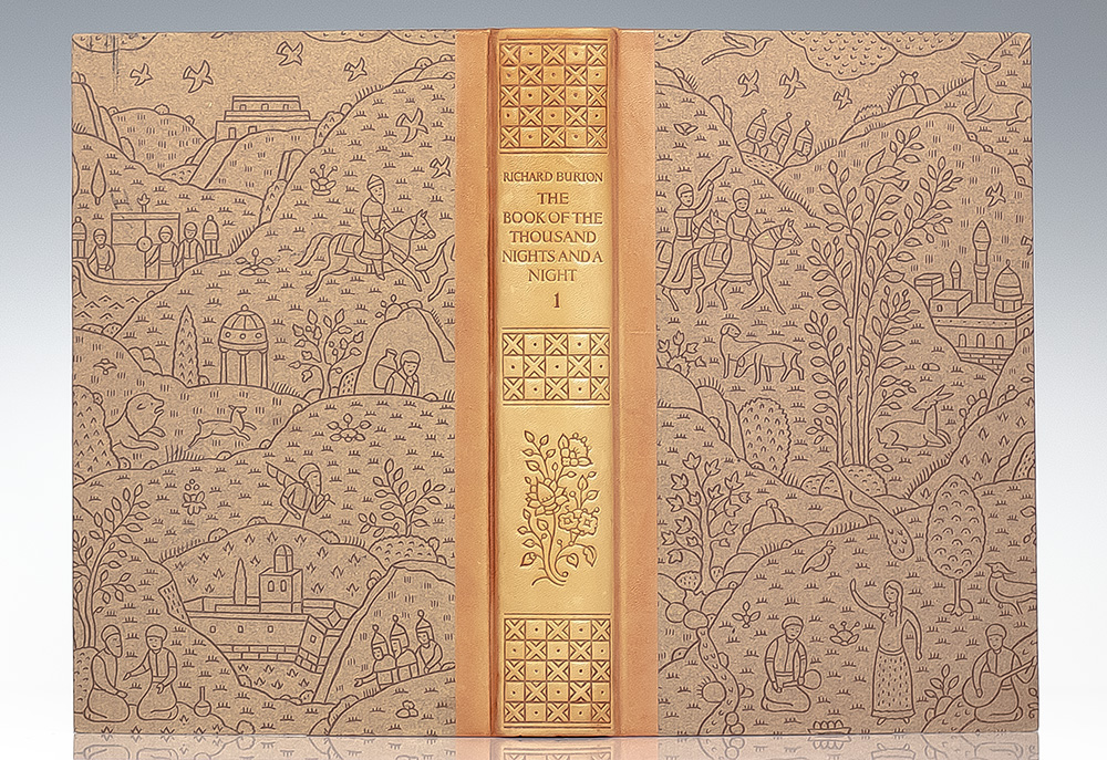Privately printed signed Limited Editions Club edition of the unabridged translation of Burton's famed work. Octavo, six volumes bound in half leather over printed paper boards, elaborate geometric and botanical stamping to the spine, illustrated with 1001 drawings by Valenti Angelo. One of fifteen hundred numbered copies made for the members of The Limited Editions Club and signed by the illustrator, Valenti Angelo, on the colophon, this is number 1398. In fine condition. An exceptional set.