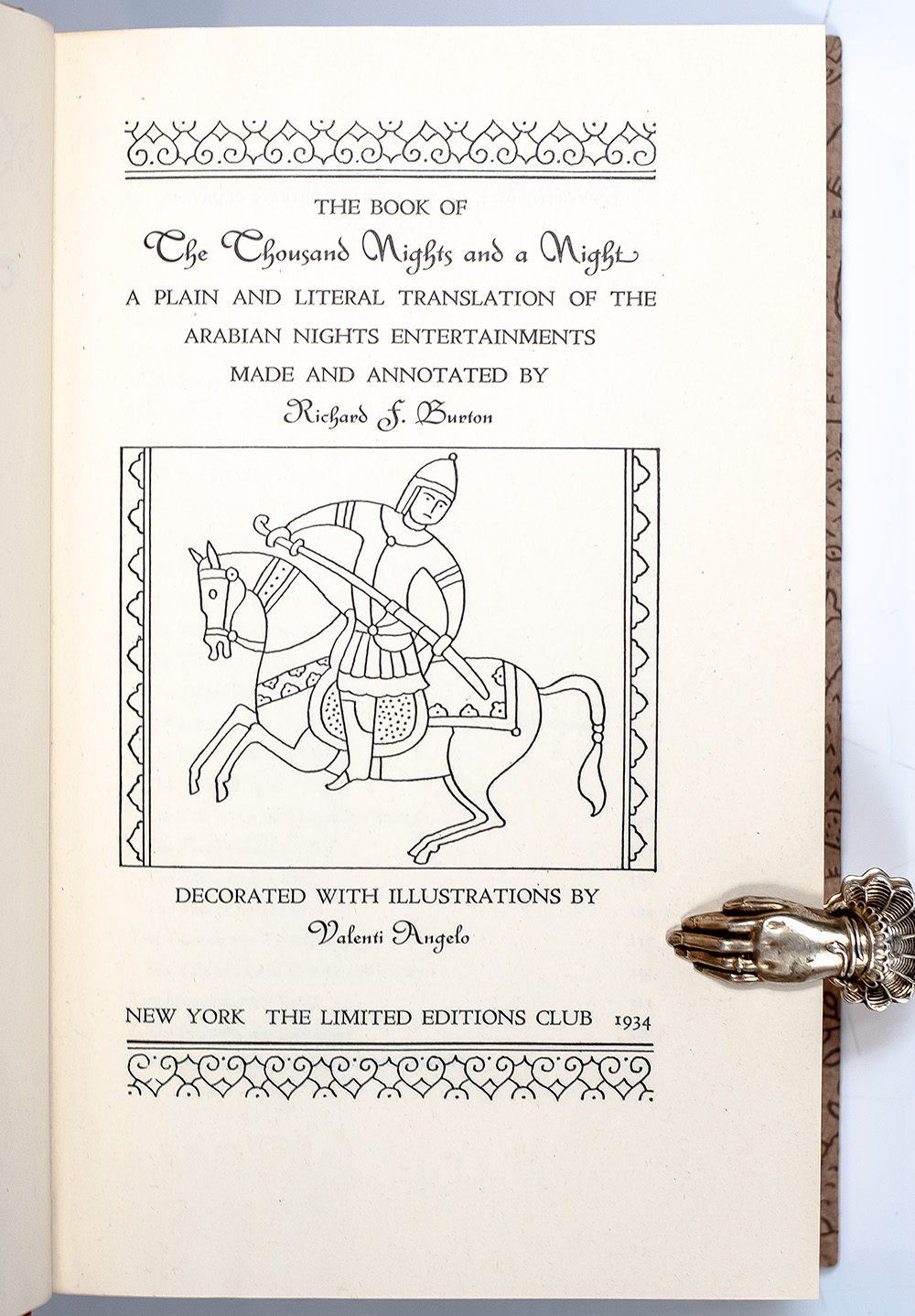 Privately printed signed Limited Editions Club edition of Richard Burton's The Book of The Thousand Nights and a Night; one of 1500 numbered copies signed by illustrator Valenti Angelo