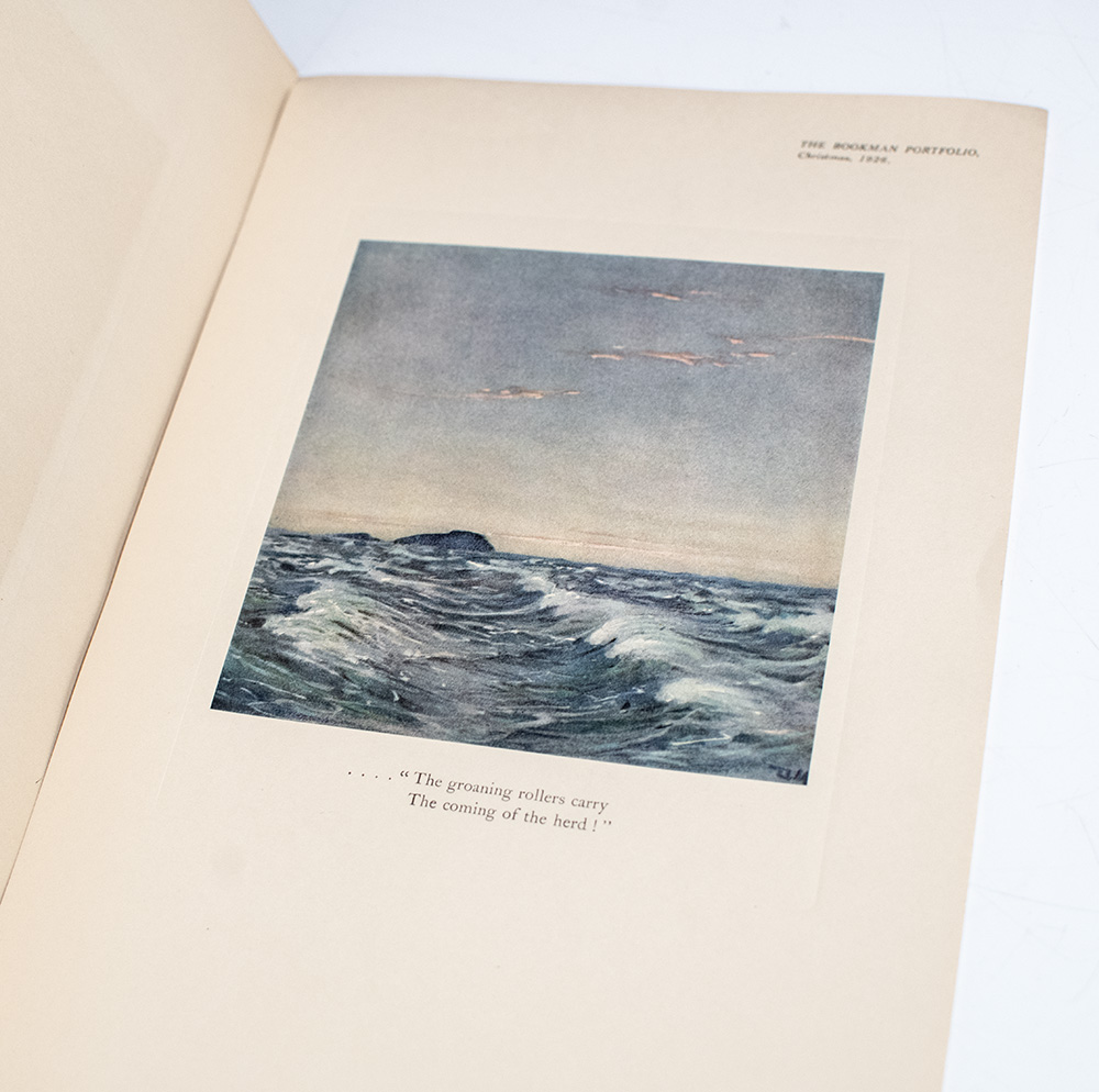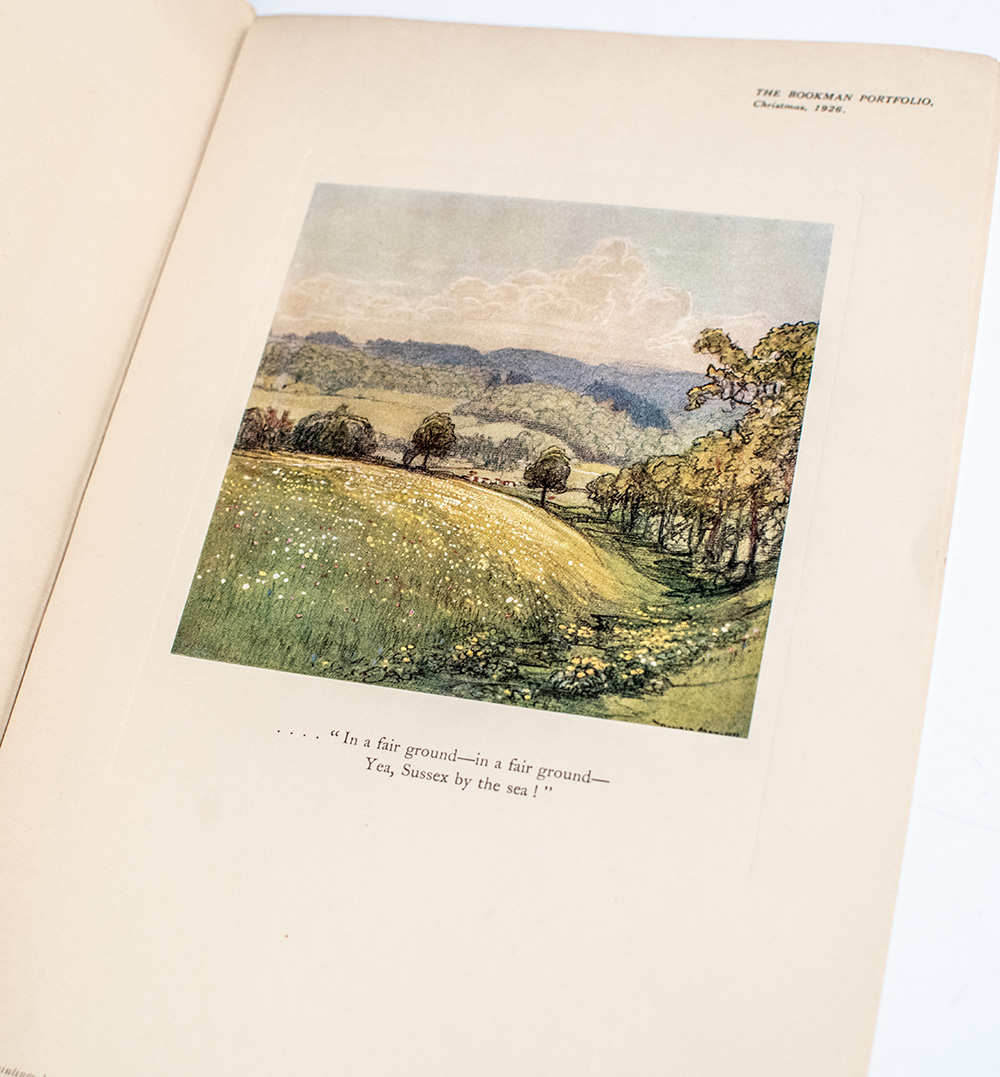 The Bookman Portfolio 1926 Christmas issue containing three color illustrations inspired by Kipling's collection of poems "Sea and Sussex." Quarto, original wrappers, three colored plates laid in. In very good condition. Paintings by Donald Maxwell. From Rudyard Kipling's Verse.