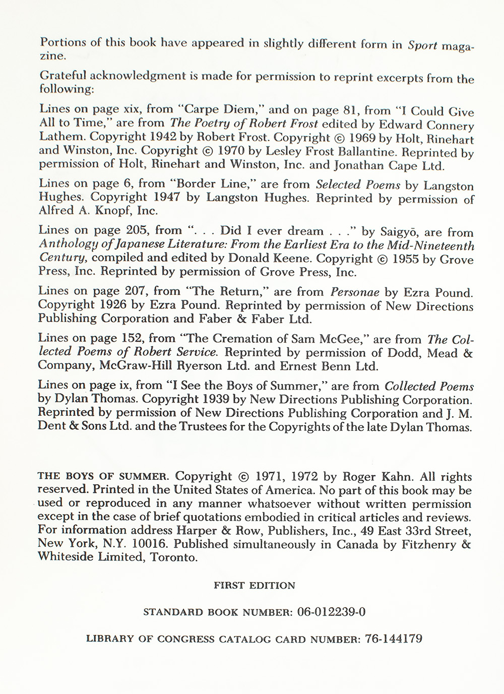 First Edition of The Boys of Summer; Signed by Roger Kahn