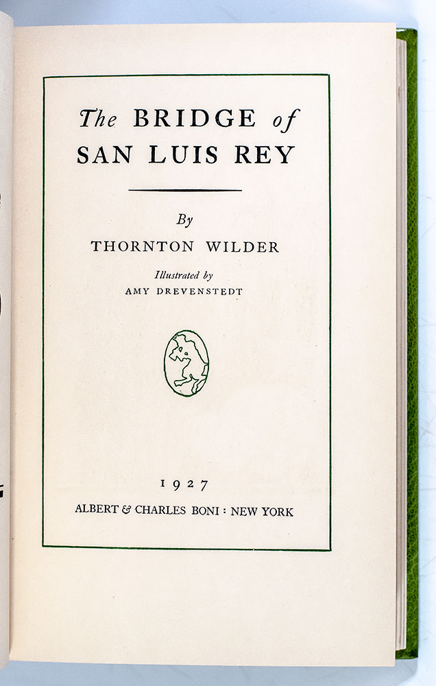 “There is a land of the living and a land of the dead and the bridge is love, the only survival, the only meaning": First Edition of The Bridge of San Luis Rey; Finely Bound by the Harcourt Bindery
