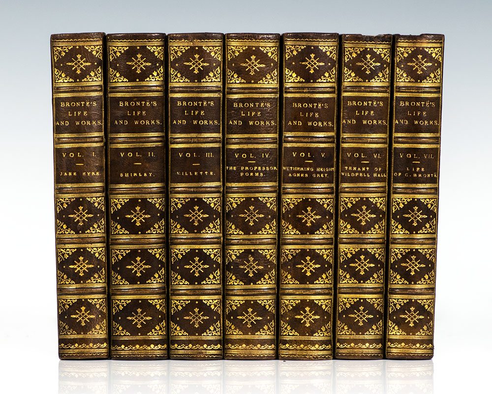 Finely bound set of the works of the Sisters Bronte. Octavo, 7 volumes. Bound in three quarters morocco over marbled boards. Gilt titles and tooling to the spine, gilt ruled to the front and rear panels, marbled endpapers, marbled edges, illustrated. In near fine condition. A very nice set.