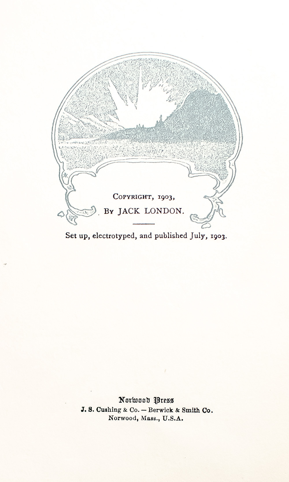 First edition of one of the most desirable classics in American literature and London's best and most enduring work. BAL 1187. Octavo, original pictorial green cloth blocked in black, white, and terra-cotta, pictorial endpapers, top edge gilt. Decorated with 11 color plates including tissue-guarded frontispiece and 5 color illustrations in text by Philip R. Goodwin and Charles Livingston Bull. Decorations by Charles E. Hooper. In very good condition with rubbing to the extremities. A nice example.