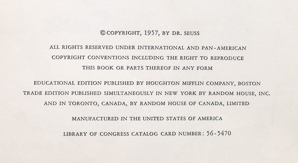 "I KNOW IT IS WET AND THE SUN IS NOT SUNNY, BUT WE CAN HAVE LOTS OF GOOD FUN THAT IS FUNNY": FIRST EDITION OF THE CAT IN THE HAT