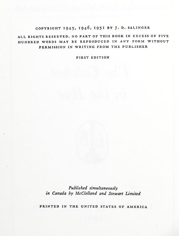 "IF YOU REALLY WANT TO HEAR ABOUT IT": FIRST EDITION THE CATCHER IN THE RYE IN A FINE FIRST-ISSUE DUST JACKET