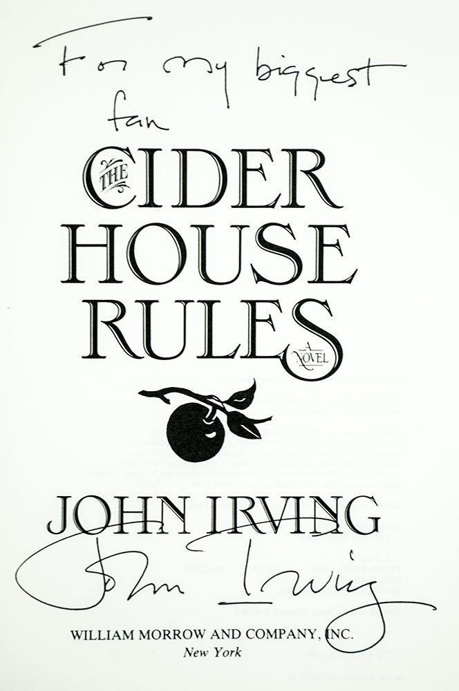 First edition, second printing of Irving's sixth novel. Octavo, original half cloth. Signed by the author on the title page, "For my biggest fan John Irving." Fine in a fine dust jacket. Jacket design by Honi Werner.