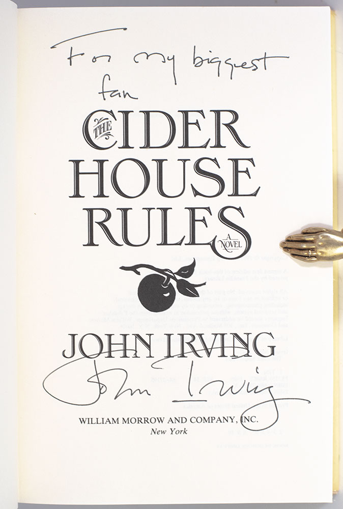"For My Biggest Fan": First Edition of John Irving's The Cider House Rules; Signed by Him