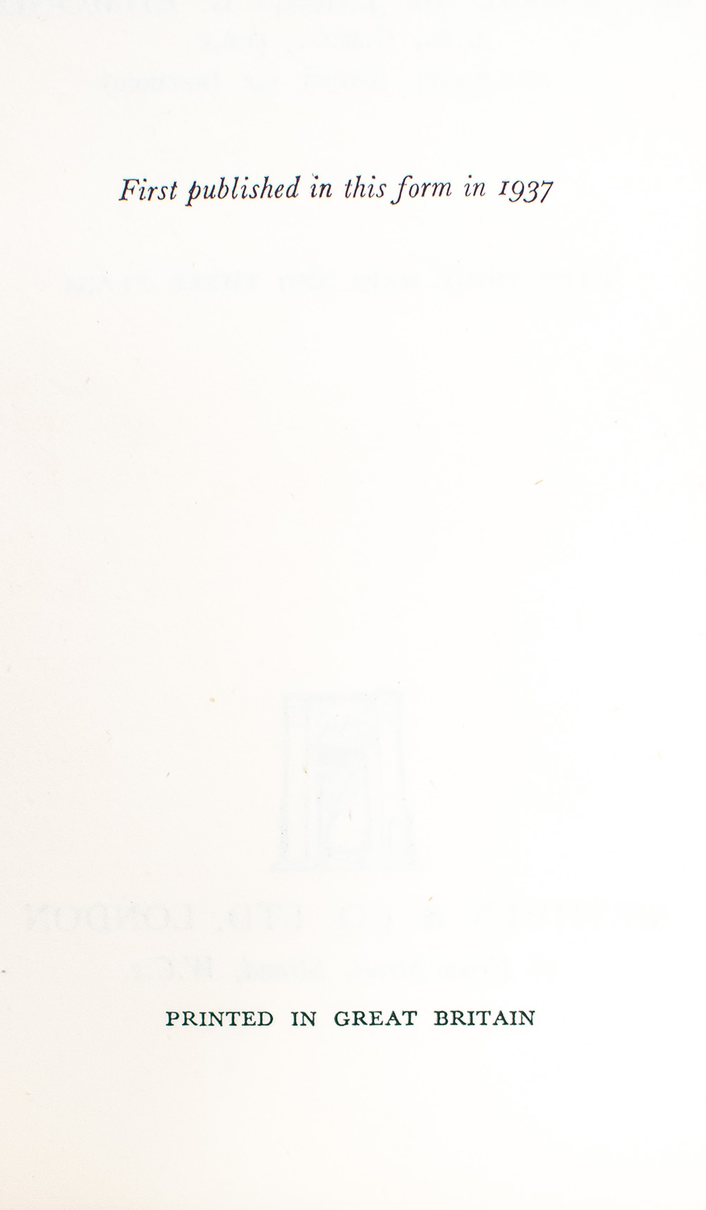 London: Methuen & Co. Ltd, 1937.