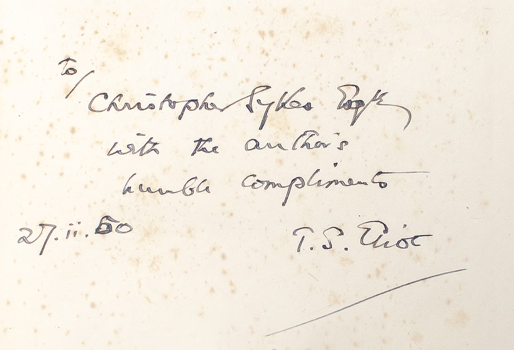 Of a craving for something I cannot find And of the shame of never finding it": First edition of The Cocktail Party; Inscribed by T.S. Eliot before Publication to Friend Christopher Sykes