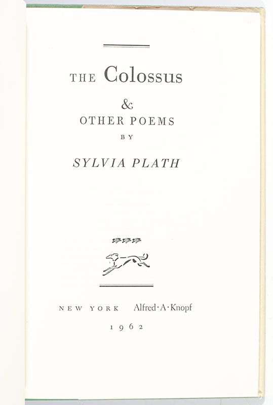 “Speak in sign language of a lost otherworld, A world we lose by merely waking up": First edition of Sylvia Plath's The Colossus and Other Poems
