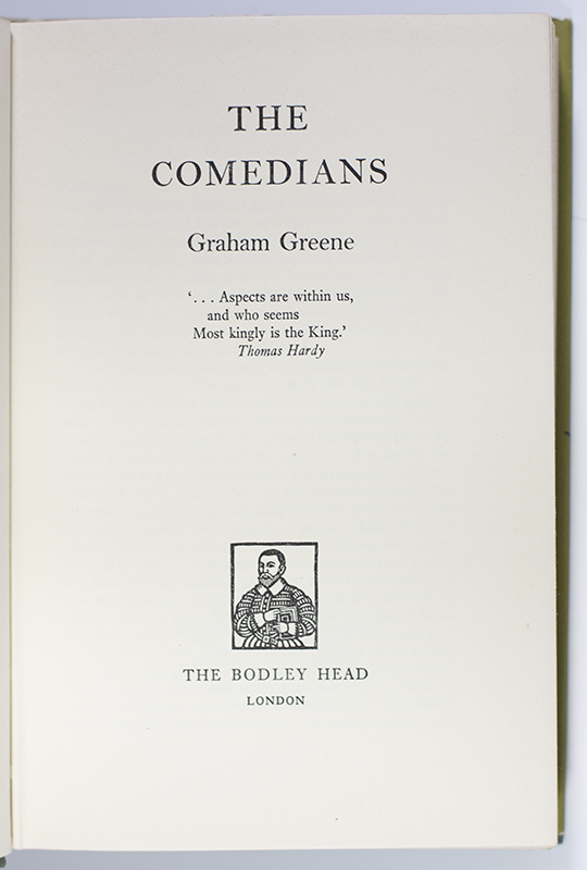 "THERE IS A POINT OF NO RETURN, UNREMARKED AT THE TIME, IN MOST LIVES": FIRST EDITION OF THE COMEDIANS; INSCRIBED BY GRAHAM GREENE