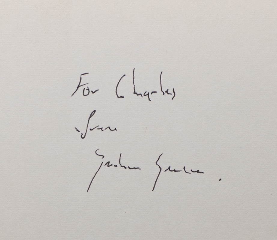 First edition of this novel set in Haiti under the rule of "Papa Doc" Duvalier, which explores the political suppression and terrorism through the figure of an English hotel owner, Brown. Octavo, original green cloth. Presentation copy, inscribed by the author on the title page, "For Charles from Graham Greene." Fine in a near fine dust jacket with a touch of shelfwear. Jacket design by Ivan Lapper.