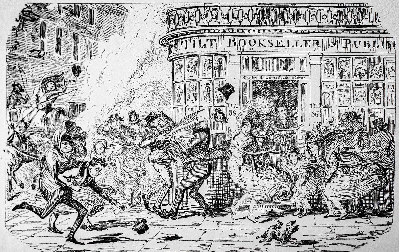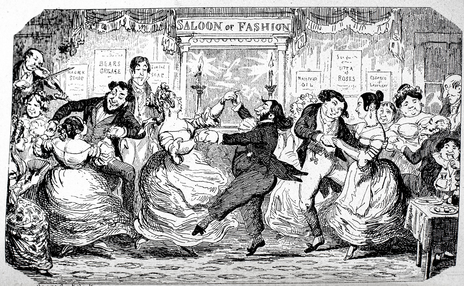 Praised as the "modern Hogarth" during his lifetime, British caricaturist and book illustrator George Cruikshank illustrated numerous works for close friend Charles Dickens including Sketches by Boz (1836), The Mudfog Papers (1837–38) and Oliver Twist (1838). The Comic Almanacks of George Cruikshank have long been regarded by admirers of the inimitable artist as among his finest, most characteristic productions. Extending over a period of nineteen years, from 1835 to 1853, inclusive, they embrace the best period of his artistic career, and show the varied excellences of his marvelous power.