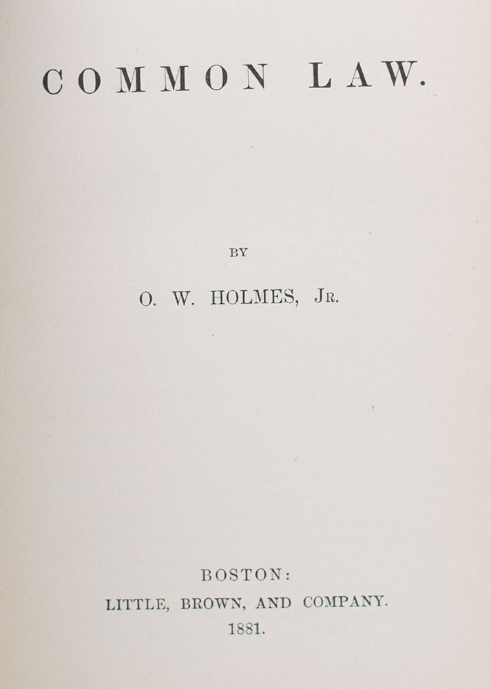 “Even a dog distinguishes between being stumbled over and being kicked": First Edition of Oliver Wendell Holmes' The Common Law, Among the Greatest of American Legal Works