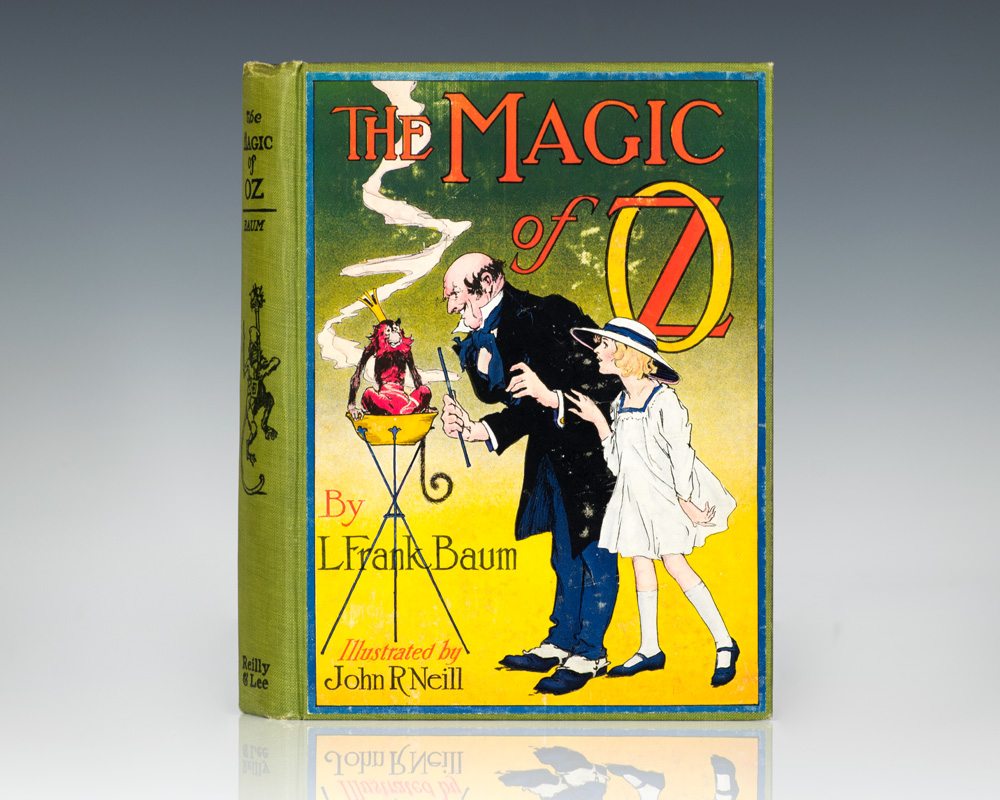 Complete set of first editions of L. Frank Baum's Oz series. Quarto, 14 volumes, original pictorial cloth. The Wonderful Wizard of Oz which is a first edition, first state in a B binding. The set is comprised of The Wonderful Wizard of Oz, The Marvelous Land of Oz, Ozma of Oz, Dorothy and the Wizard of Oz, The Road to Oz, The Emerald City of Oz, The Patchwork Girl of Oz, Tik-Tok of Oz, The Scarecrow of Oz, Rinkitink in Oz, The Lost Princess of Oz, The Tin Woodman of Oz, The Magic of Oz, and Glinda of Oz. Each are in near fine to fine condition. A bright, colorful, and attractive set.