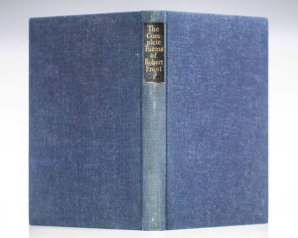 The Limited Editions Club signed limited edition of the Complete Poems of Robert Frost. Quarto, two volumes, original cloth with gilt titles to the spines, illustrated with wood-engravings by Thomas A. Nason. Boldly signed by Robert Frost, Thomas A. Nason, and Bruce Rogers on the colophon page to the rear of volume two. One of 1500 copies printed for the members of The Limited Editions Club, this is number 557. Preface by Robert Frost. Appreciation by Louis Untermeyer. In near fine condition. Housed in the original marbled board slipcase with paper titles.