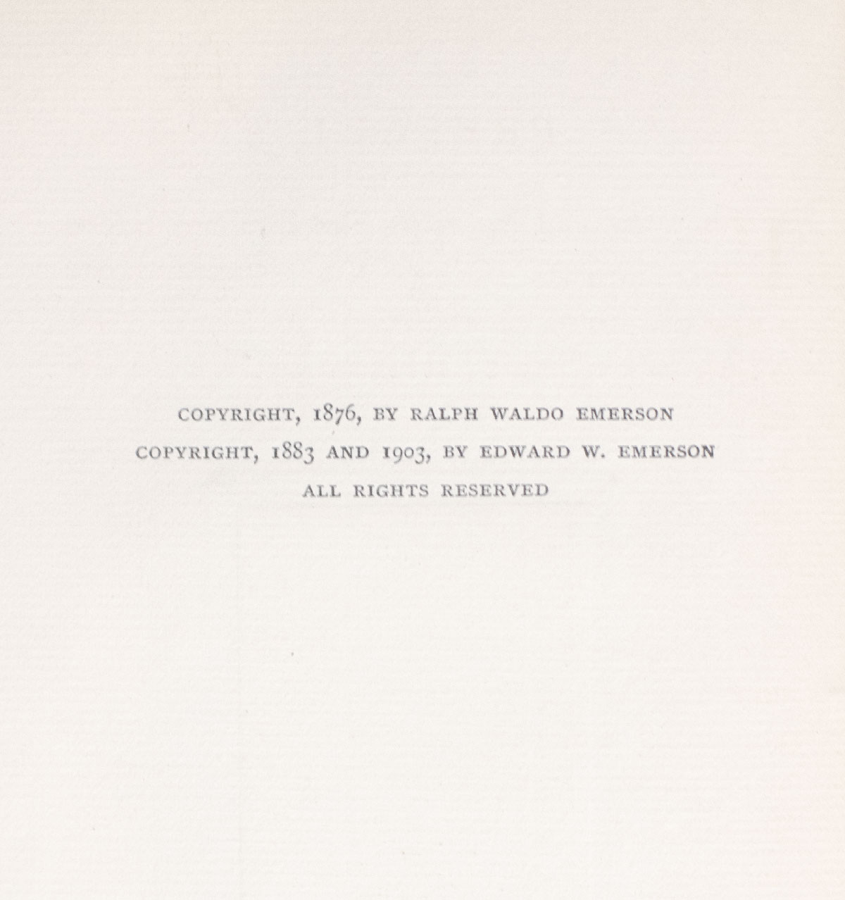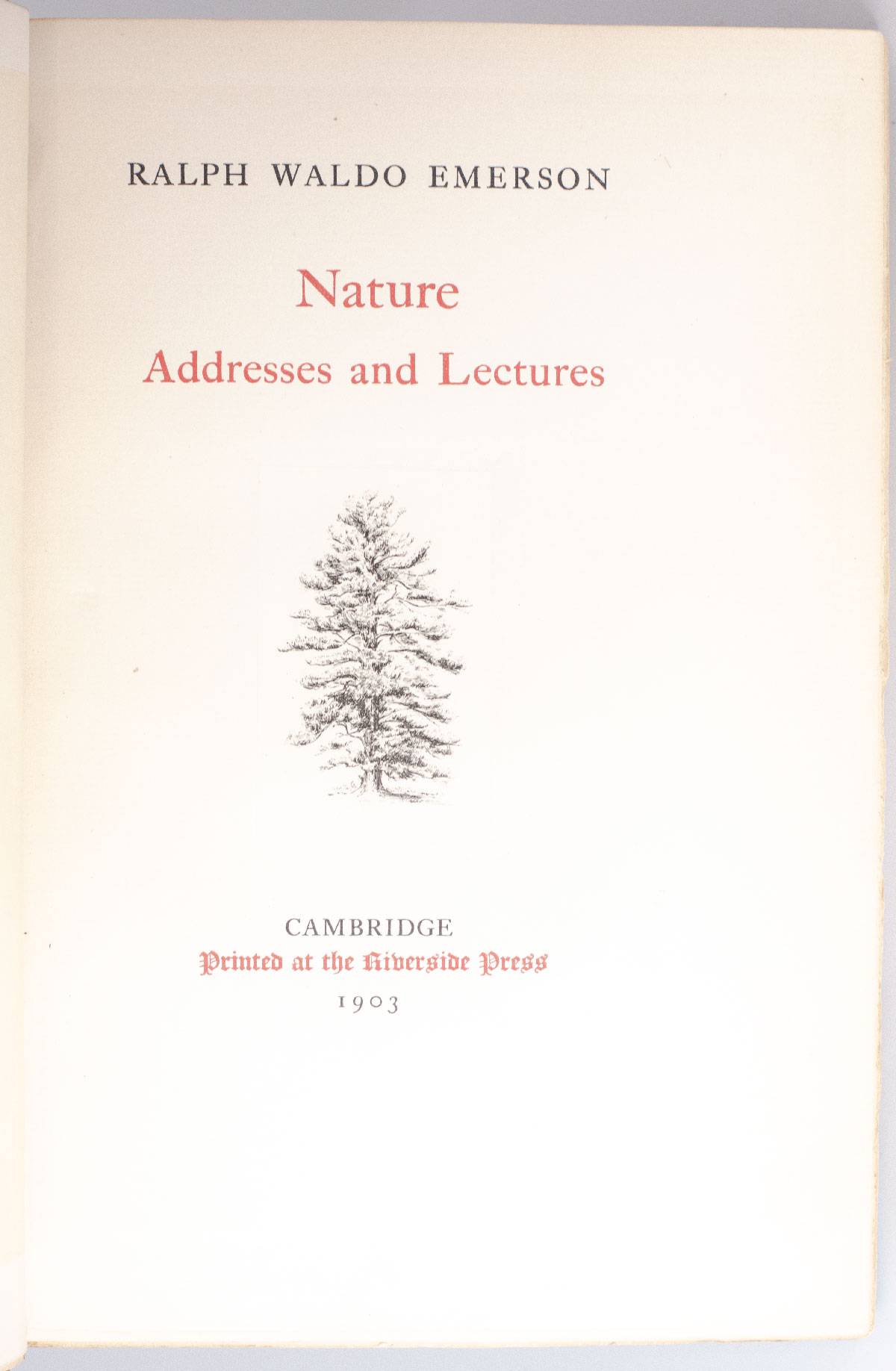 When Emerson died in 1882 he was the most famous public intellectual in America. This edition of the Complete Works includes all of Emerson’s poems, lectures, biographical sketches, letters, and his famous essays, several of which are here printed for the first time. Their "ethical inspiration and stimulation, their occasional startling phrase, their individualistic idealism, which stirred renascent Yankee New England to its depths, speaks with the same simple power and force in the midst of modern complexities" (Grolier, American 100 47).