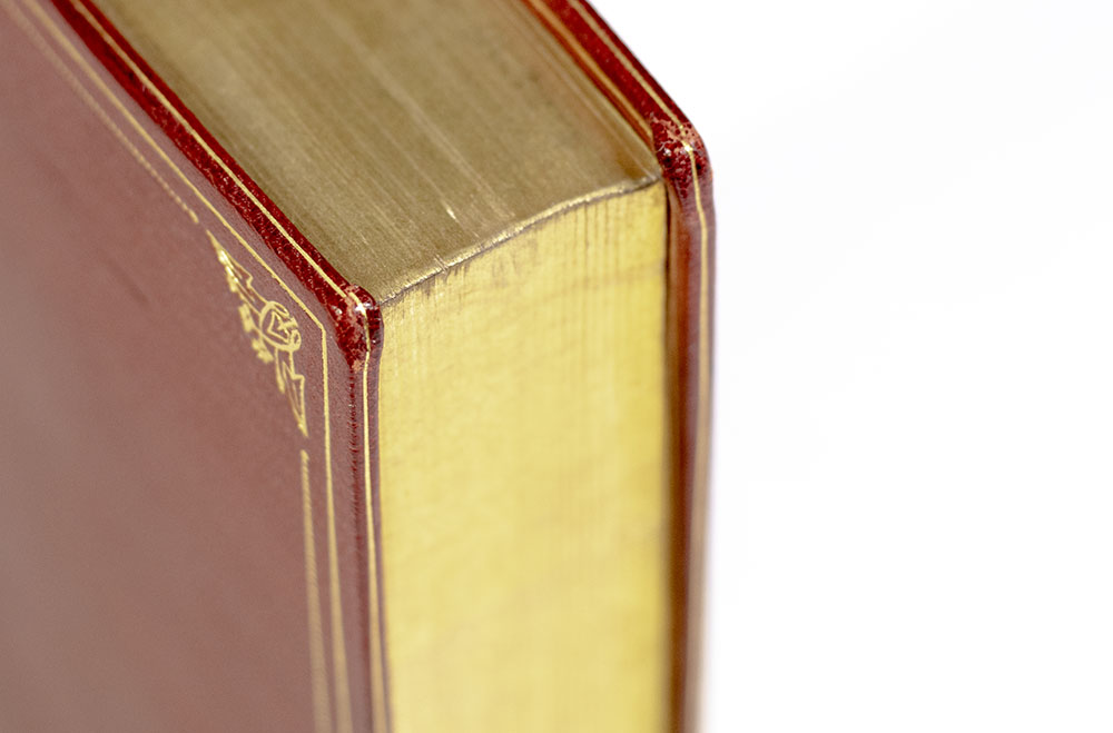 Finely bound example of The Concise Oxford French Dictionary. Octavo, bound in full crushed red morocco by Sangorski and Sutcliffe with gilt titles and tooling to the spine in six compartments within raised gilt bands, double gilt ruling and fleuron cornerpieces to the front and rear panels, gilt turn-ins and inner dentelles, marbled endpapers, all edges gilt. In near fine condition.