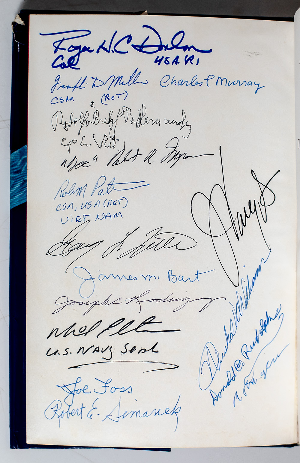 First edition of The Congressional Medal of Honor: The Names, The Deeds; signed by 30 recipients of the Medal of Honor and with 10 additional signed postcards